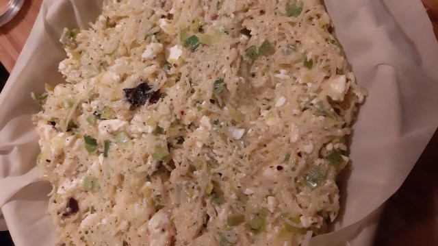 • Ето така изглежда готовото тесто. Това са си настъргани картофи за немските картофени палачинки. Всеки, който живее в Германия ги е виждал. Ако не е, сега е моментът да ги потърси. На рафтовете с пресни продукти и при бутер тестото.