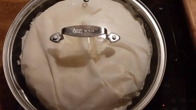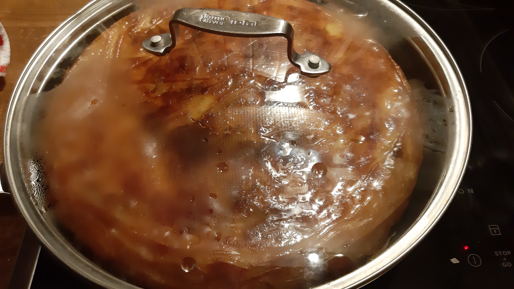 • После върнах в същия тиган, извадих хартията за печене и отново похлупих с капак.
