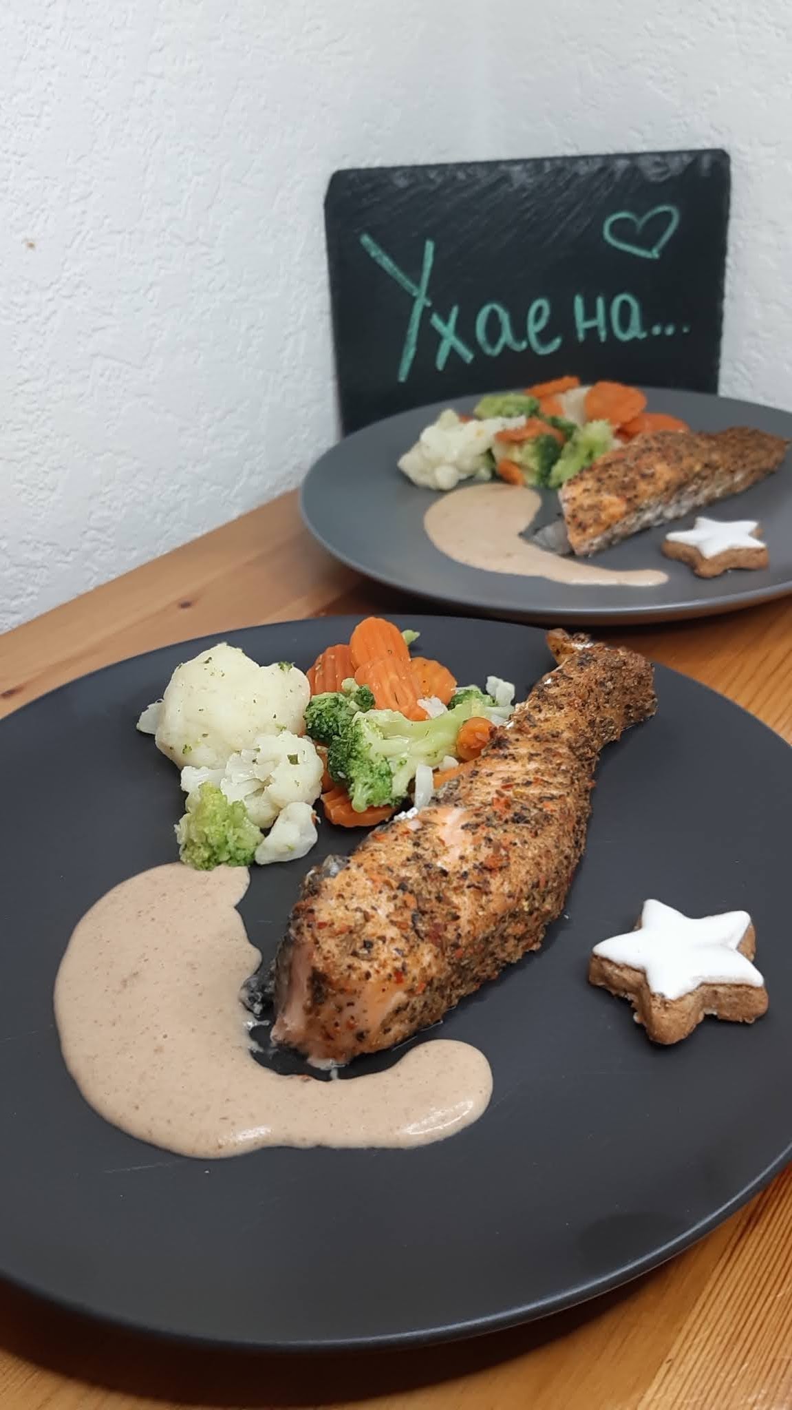 - Сервирам готовата риба с малко сос и зеленчуците. При нужда всеки си добавя сос.