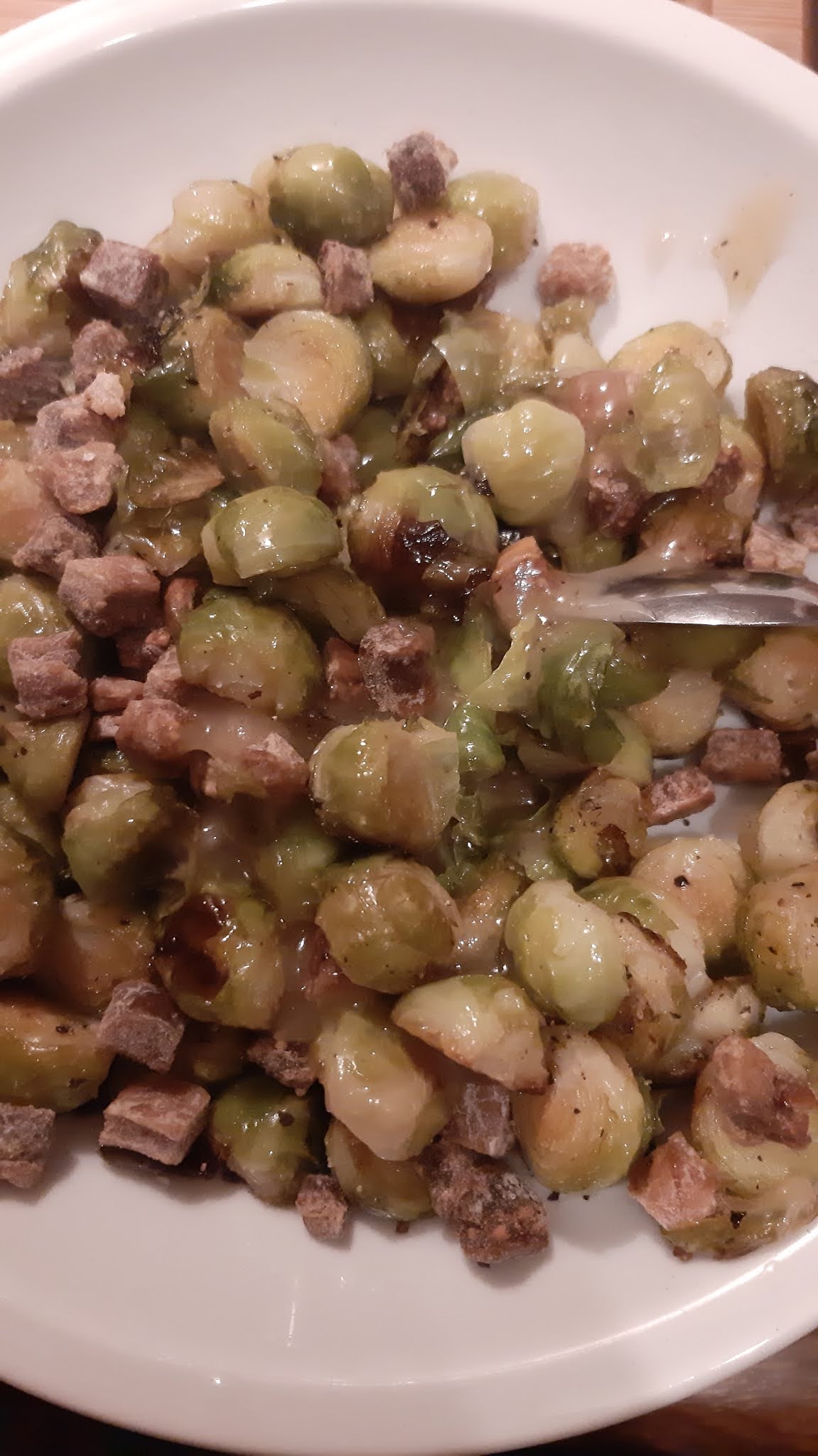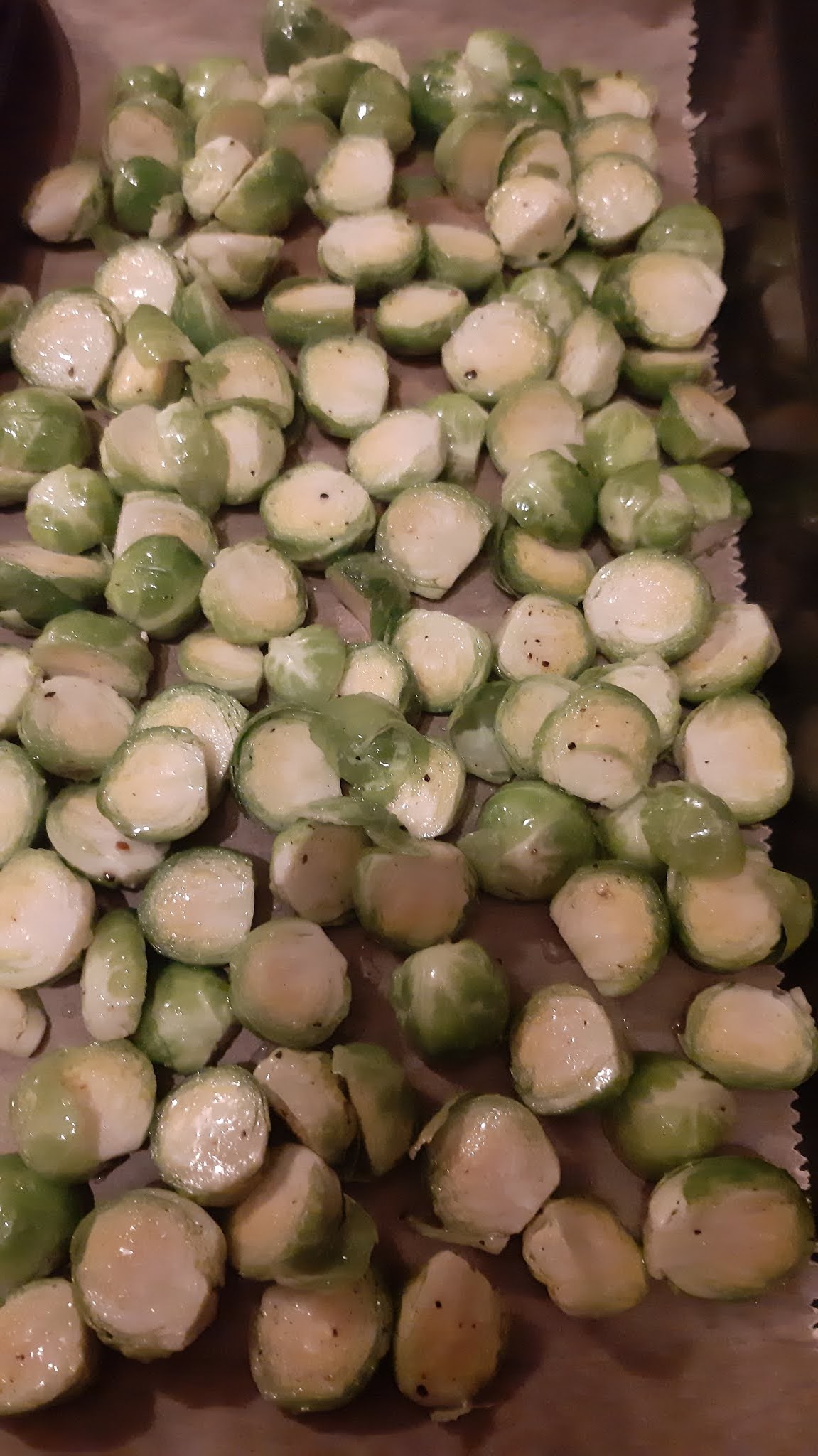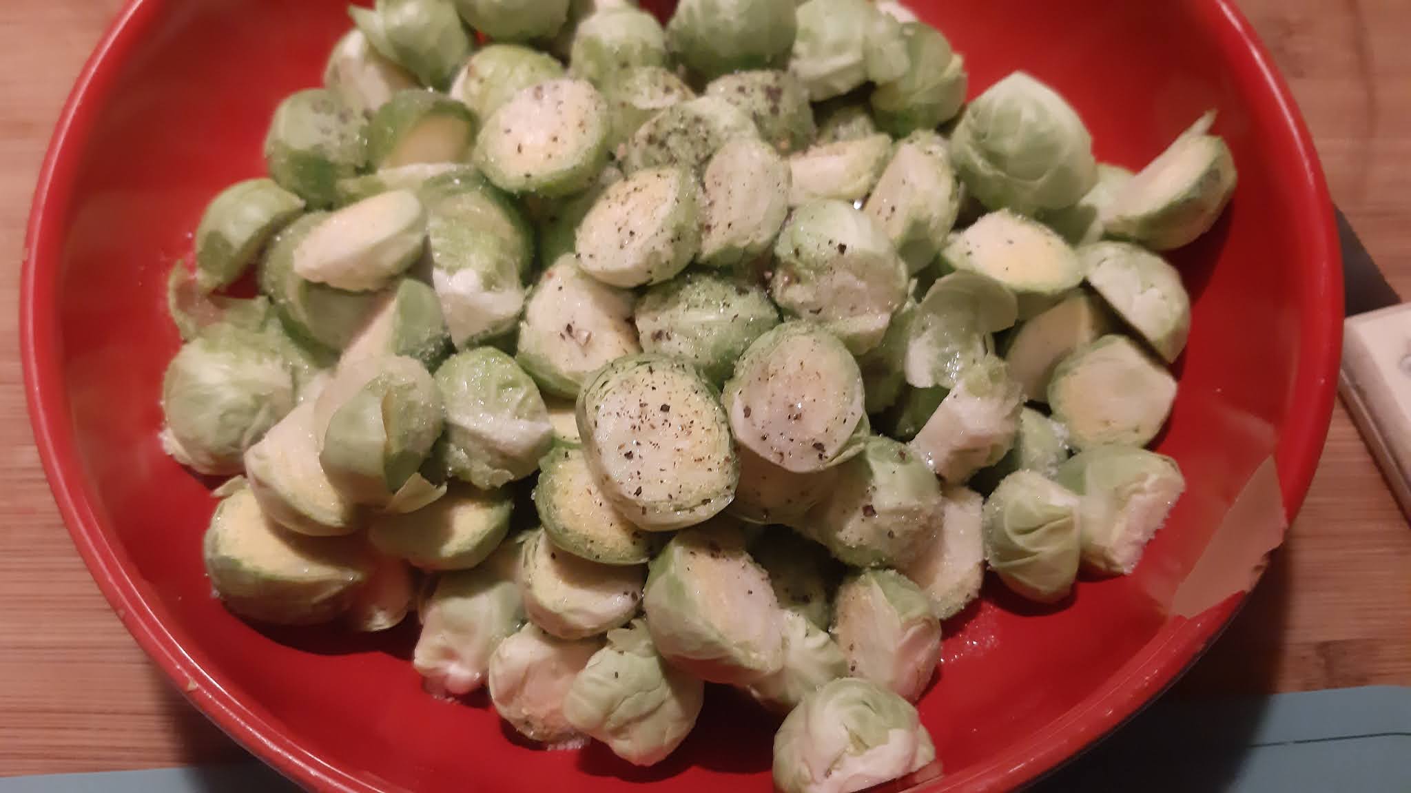 • Започвам с подготовката на брюкселското зеле, защото може да се поддържа топло докато станат готови другите продукти.
