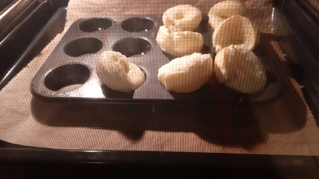 • Пекох около 18 – 20 минути или докато надутите пудинги добият златист цвят и в средата не са вече влажни.
