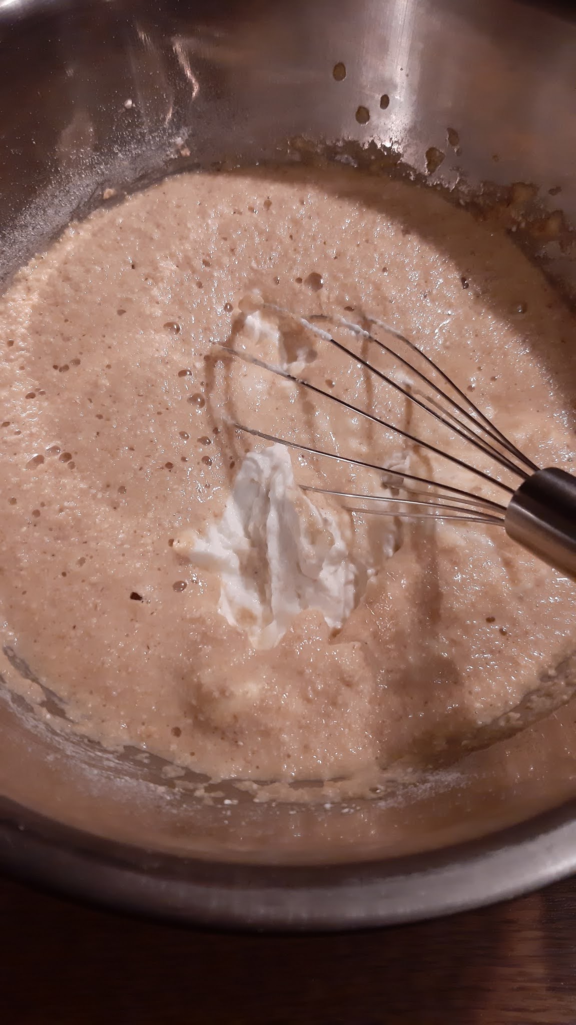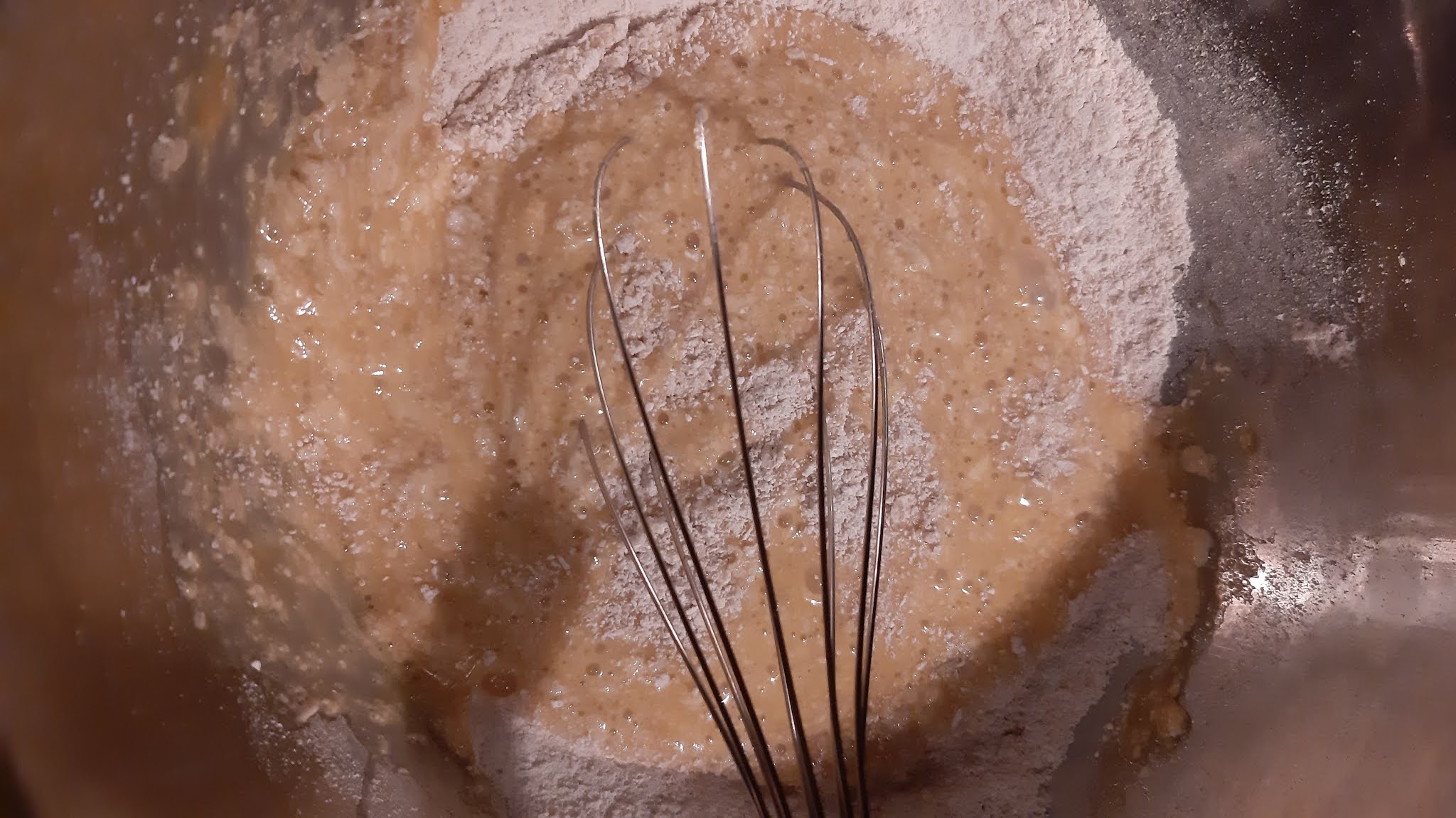- Добавям яйцата и разбивам с тел. Ако искате, използвайте и ръчен миксер, но не е нужно.