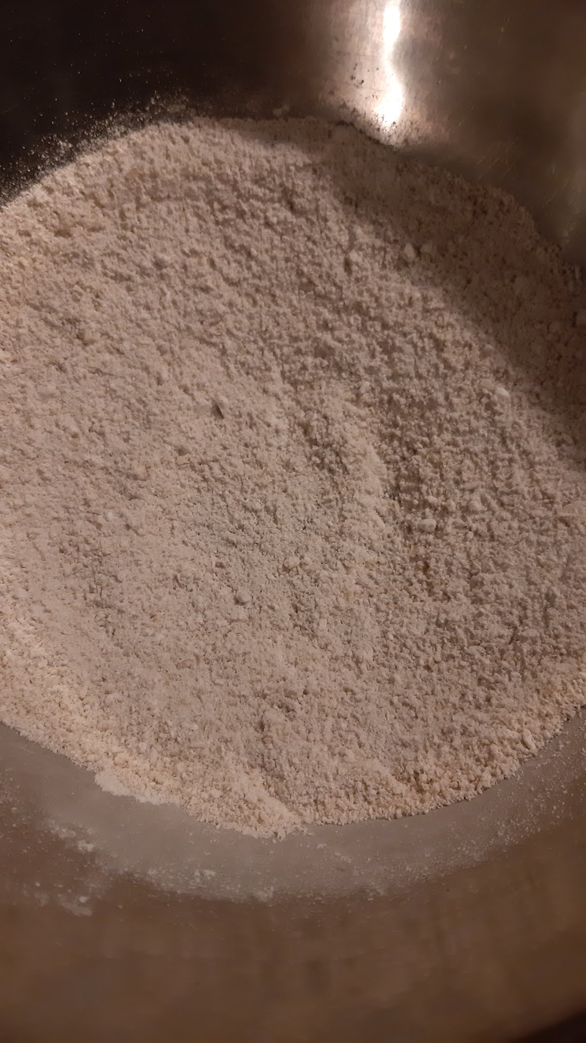 - Смесвам в купа овесеното брашно с бакпулвера.