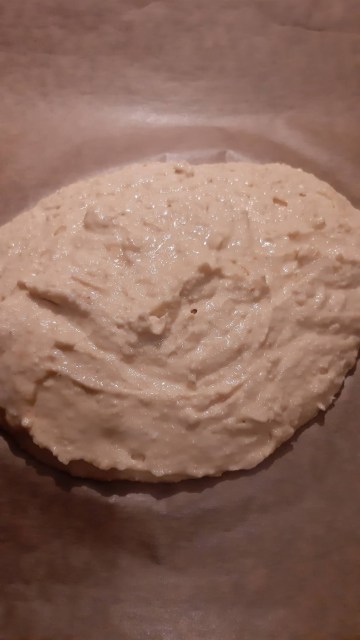 - Изчаквам тестото 10 минути да си почине. Така овесеното брашно набъбва.