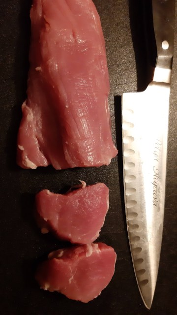 - От едно филе получавате около 12 – 14 парчета. Аз използвах половин филе, защото сме само двама и получих 7 медальона.