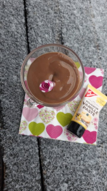 няколко капки ванилова есенция, ванилия на прах или просто 1/2 шушулка ванилия