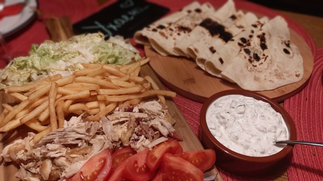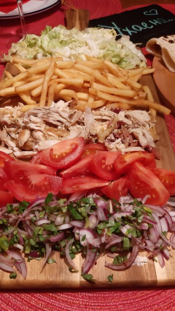 - Но тази вечер сервирах дюнери. За целта приготвих всички продукти на една дъска и всеки сам си навиваше своя дюнер.