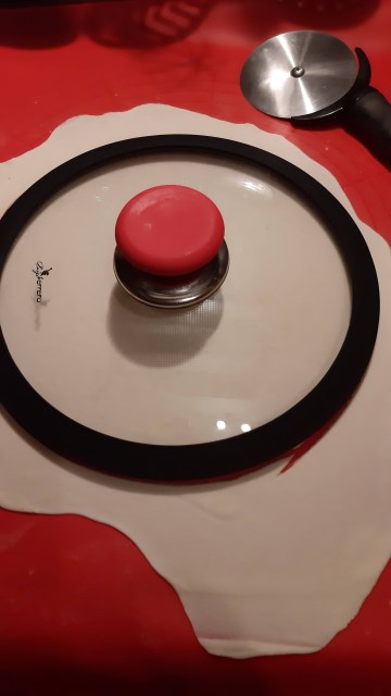 - Фиксирам с него размера и изрязвам. Така всичките ми тортили са еднакви.