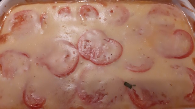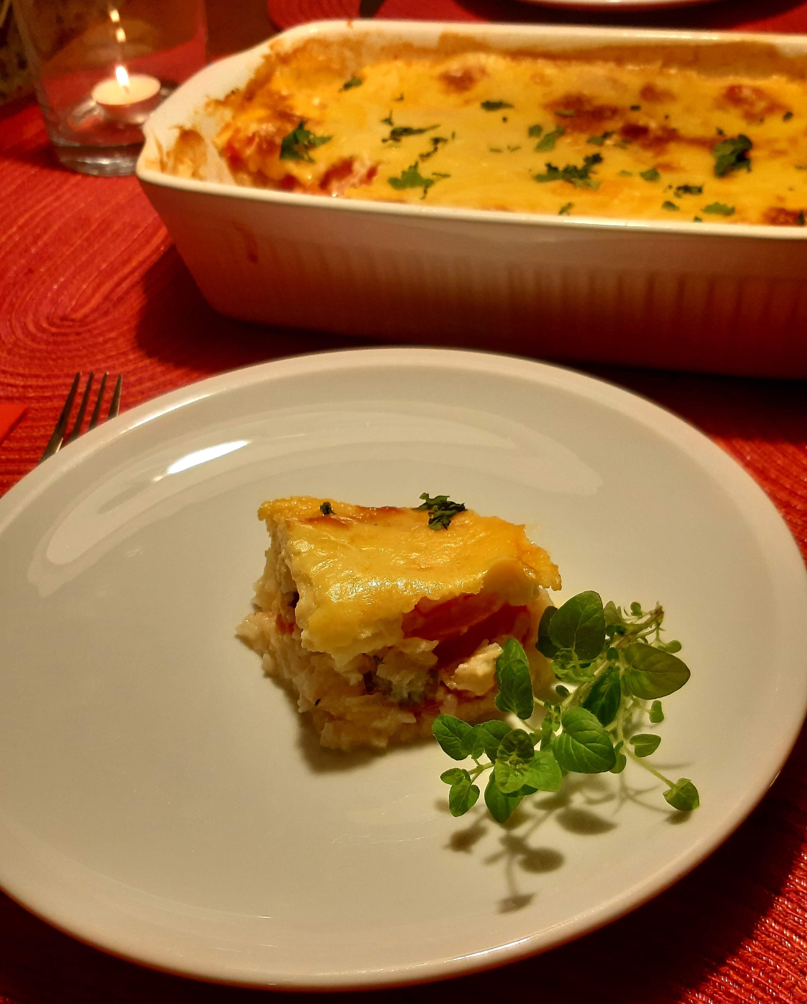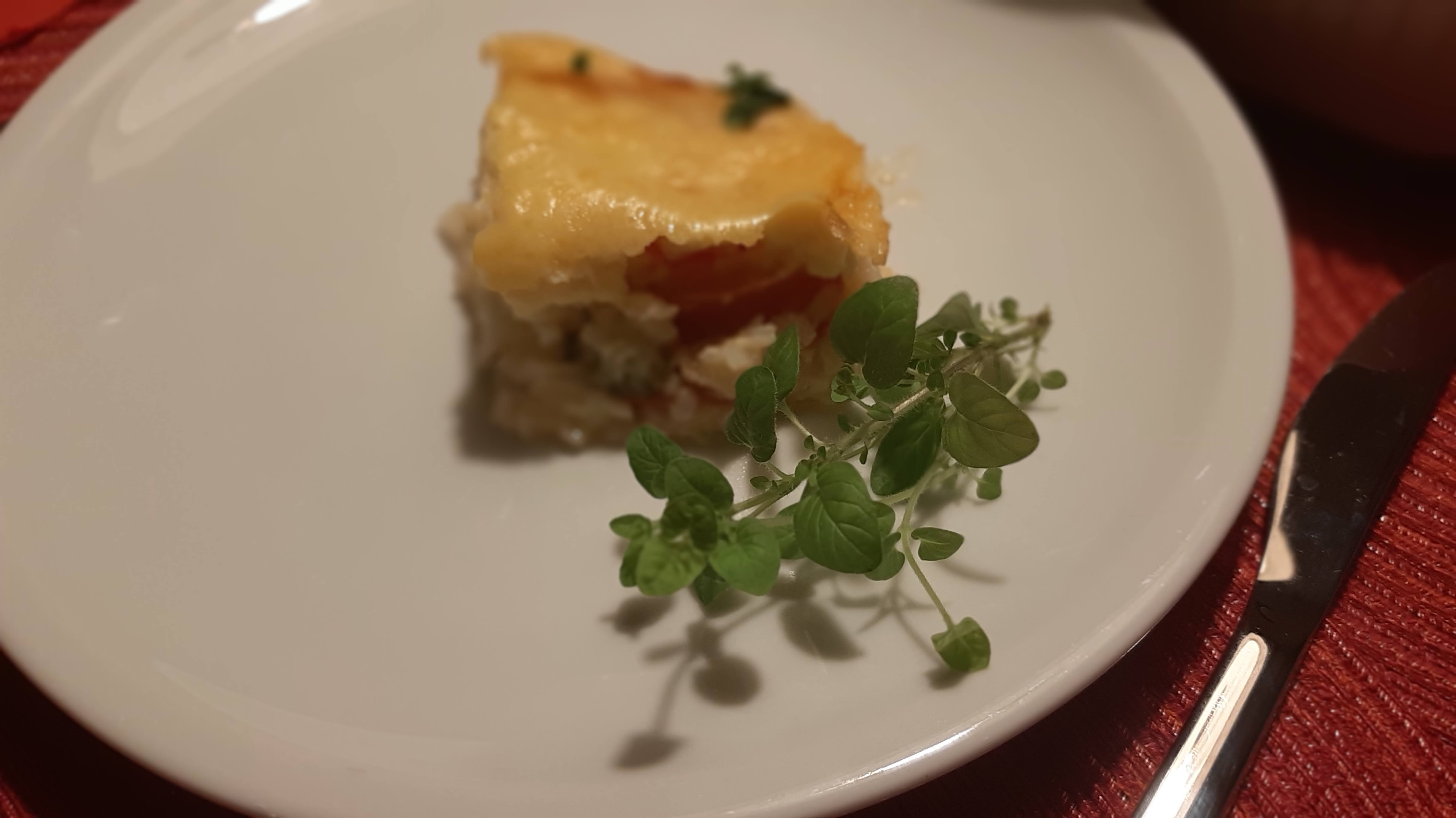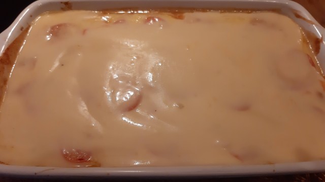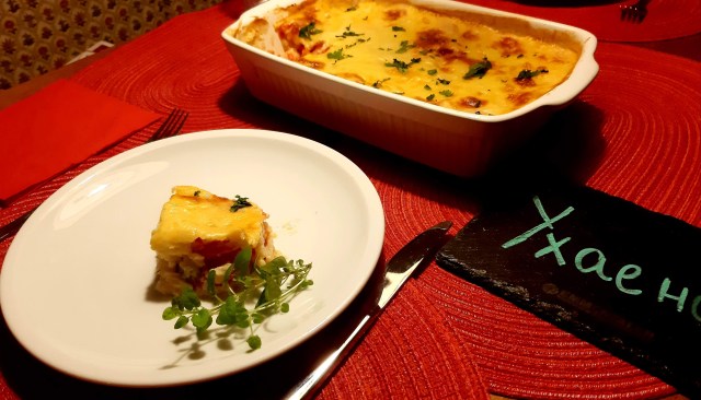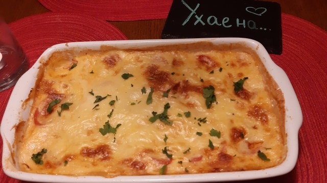 - Покривам с последен слой бешамелов сос и запичам за още 20 минути.