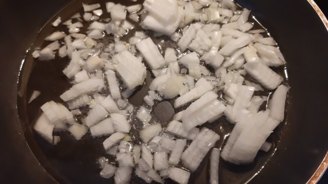 - Изпържих до омекване нарязания на малки кубчета кромид лук.