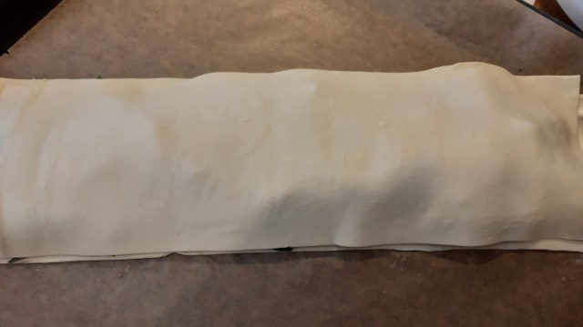 - Подвих и фиксирах с пръсти краищата така, че да не изтече плънката по време на печене.