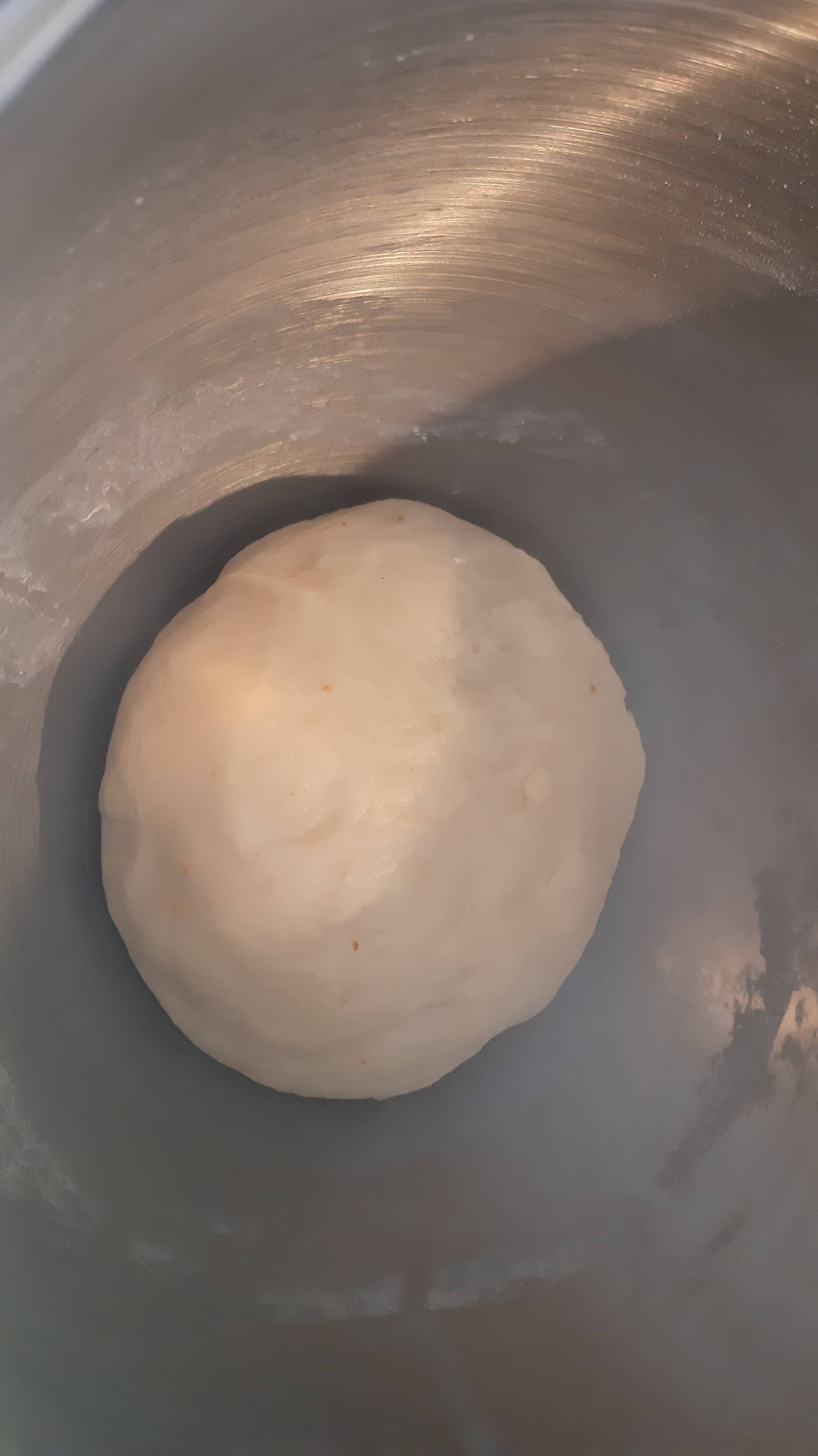 - Меся до меко и нелепнещо тесто, което накрая оформям с ръце на топка.