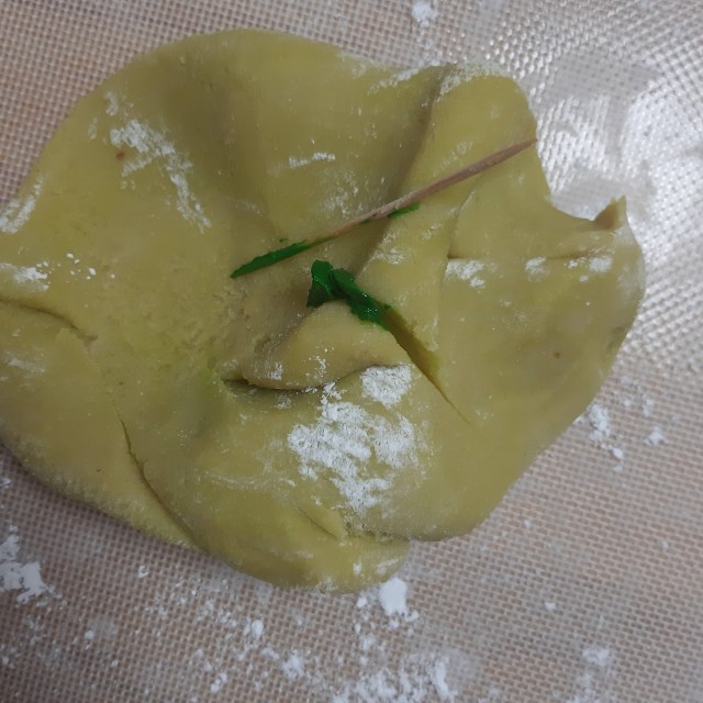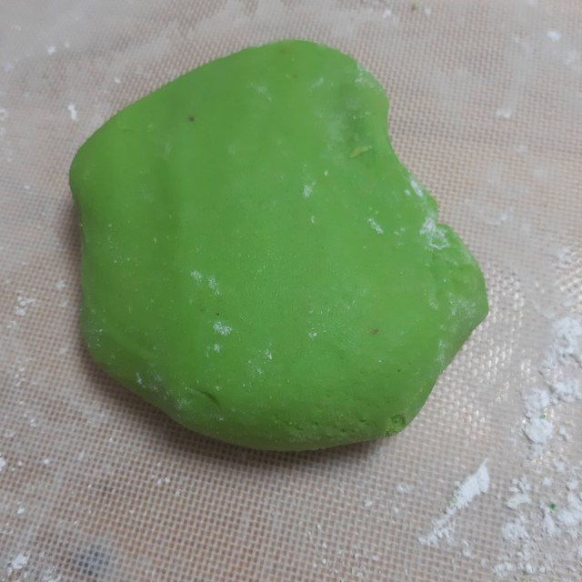 - Колкото повече меся бадемовото тесто, толкова по наситен става цвета. Затова подавам само малко по малко и с клечка за зъби.