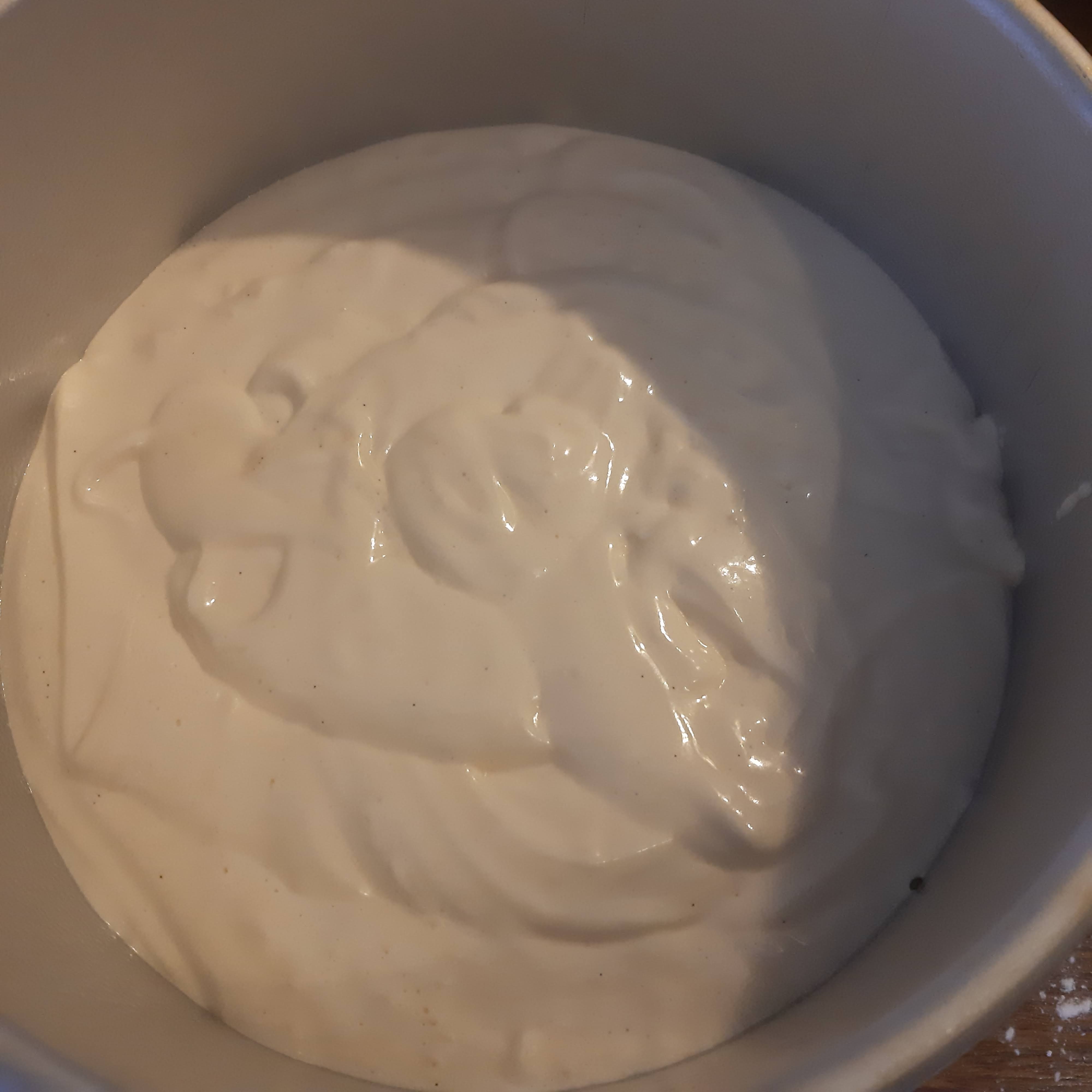 - Напръсках с мазен спрей формата за торта и изсипах крема.