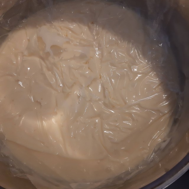 - Изключвам котлона, а крема покривам плътно с фолио за свежо съхранение.