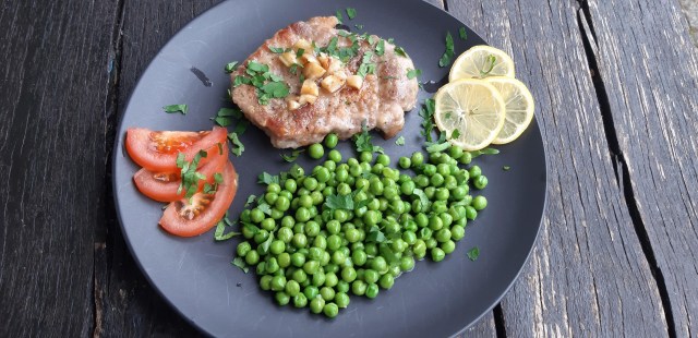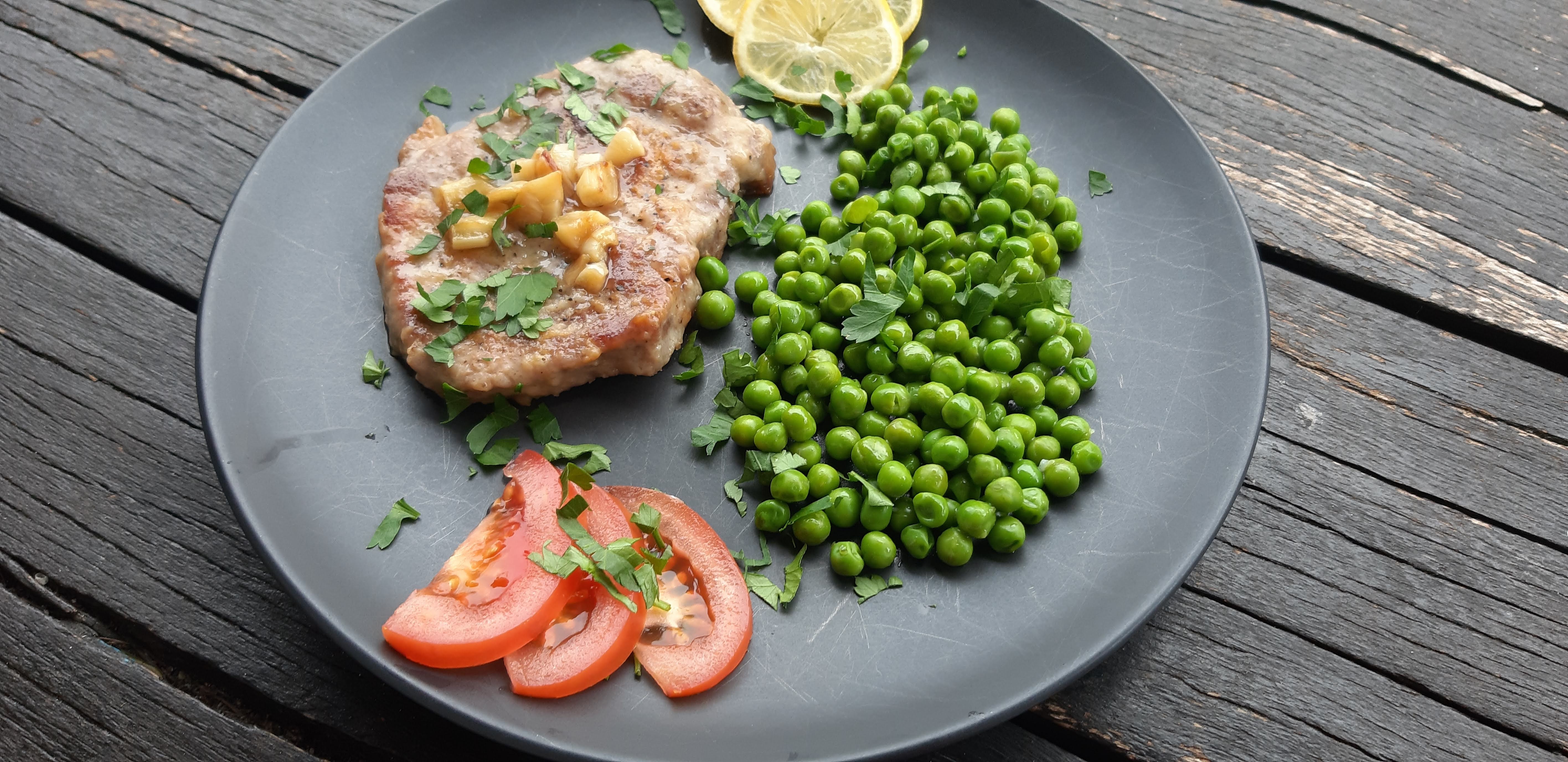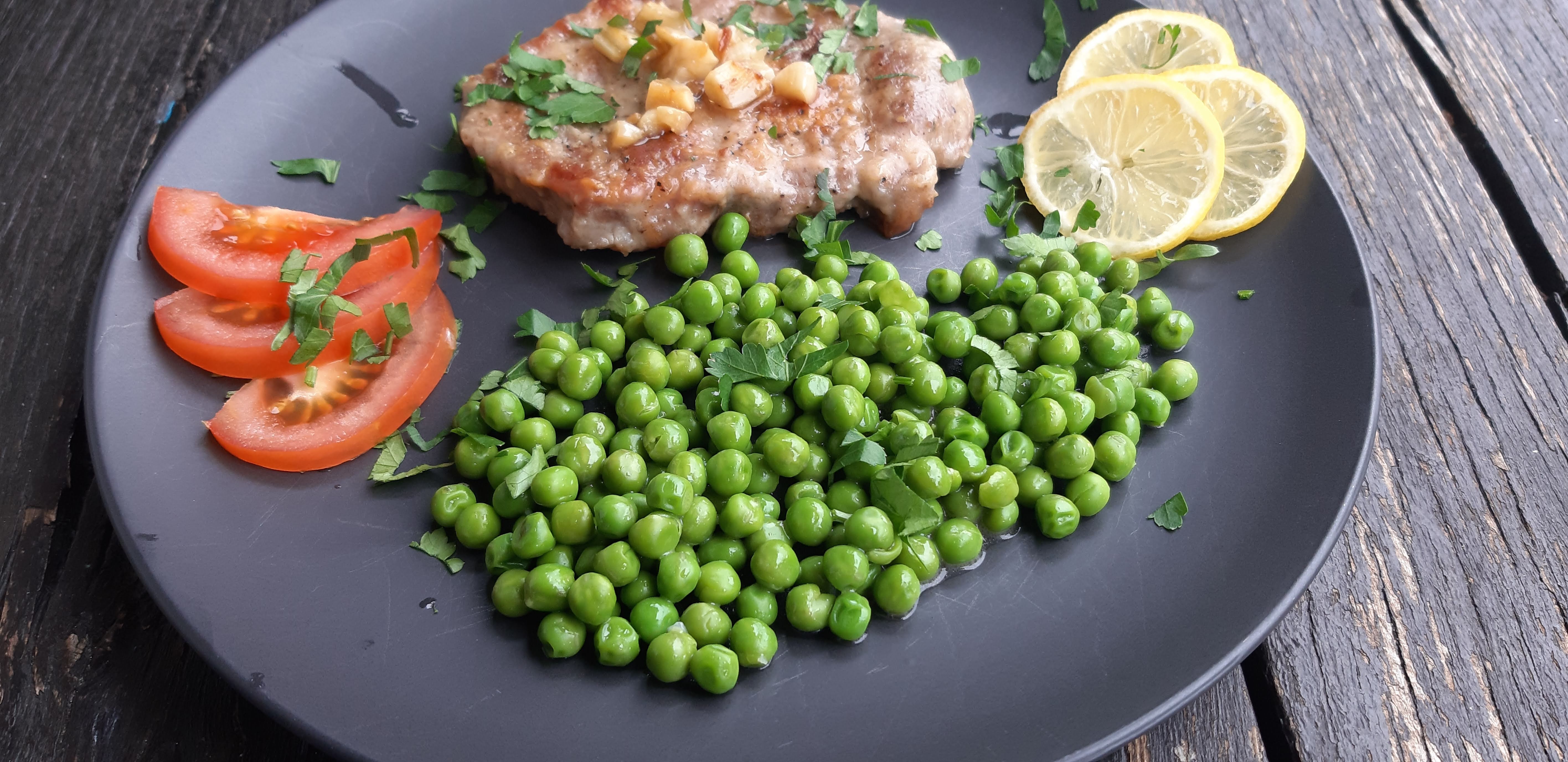 Сервирах ги с грах с масло, но са вкусни и с пюре, и с пържени картофки, и с други зеленчуци.
