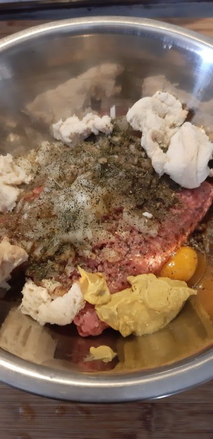 - За гнездата смесвам всички продукти в купа и омесвам каймата като за кюфтета.
