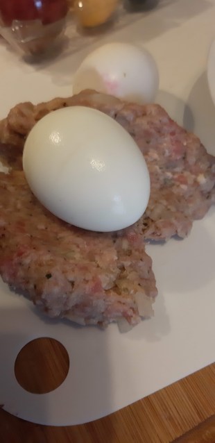 - Варените яйца купувам готови и само обелвам. Но Вие можете да ги сварите за около 10 минути или до твърдо сварени.