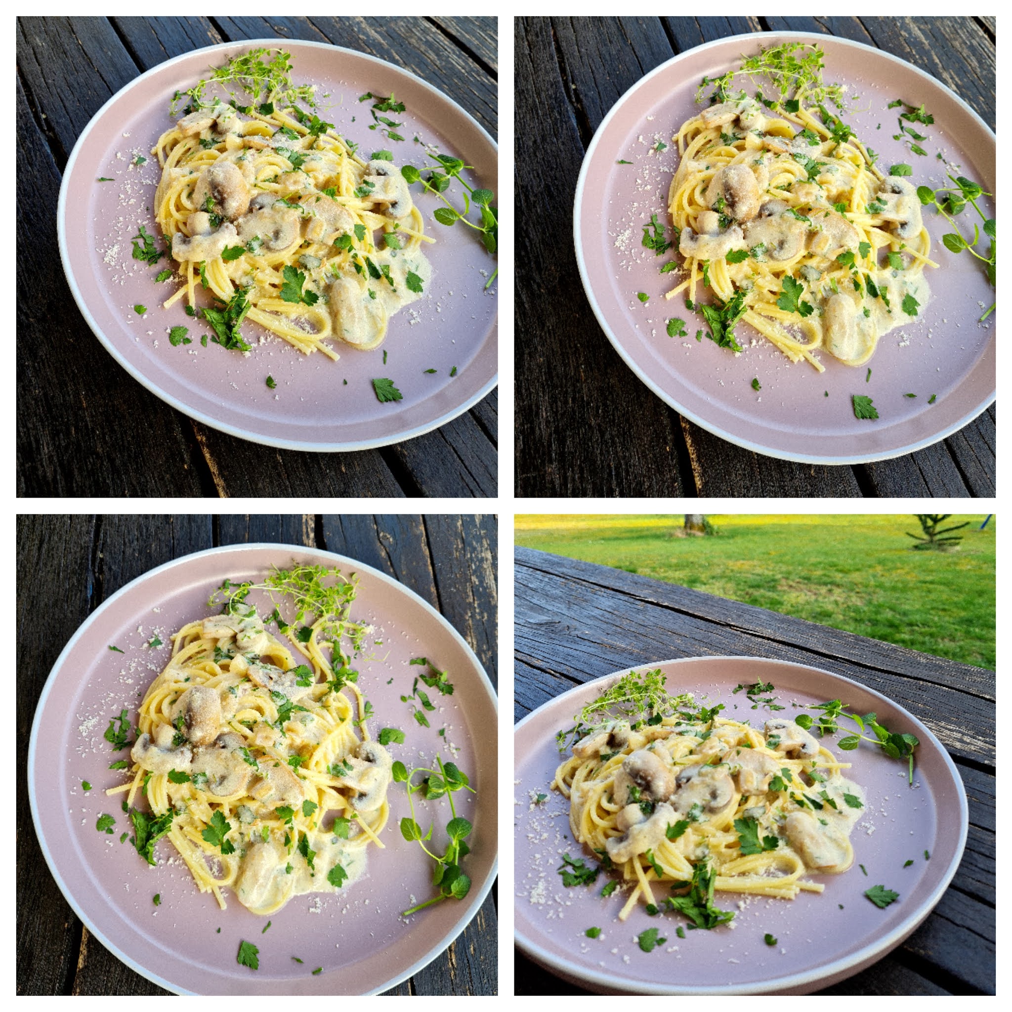 Пресни гъби и вкусни спагети. Една комбинация с невероятен аромат. Аз добавих и малко допълнителен аромат със скилидки чесън, а който иска може и да добави цвят с малко доматено пюре. Аз просто исках да са бели.