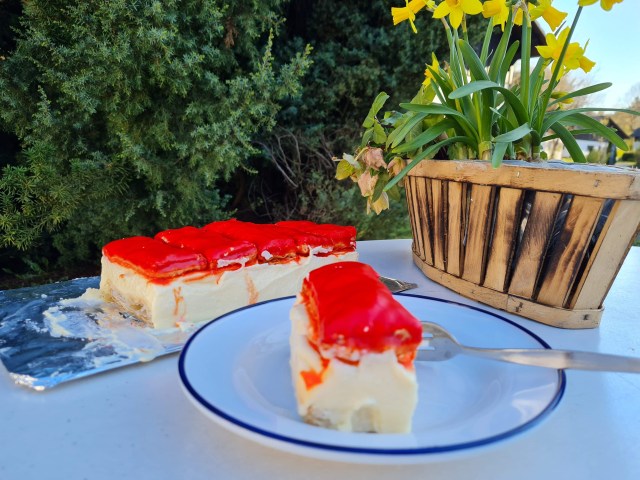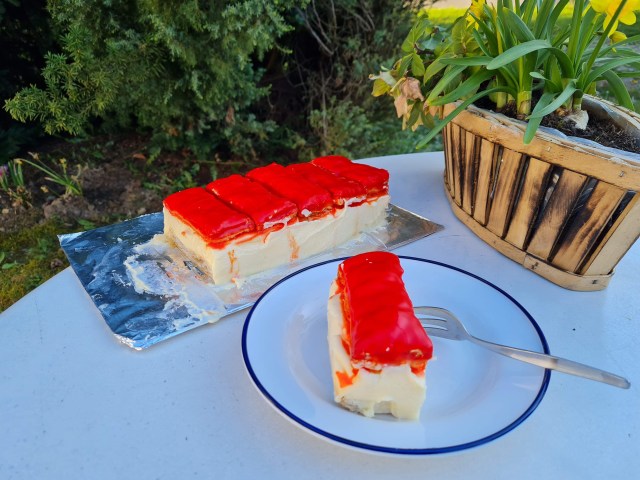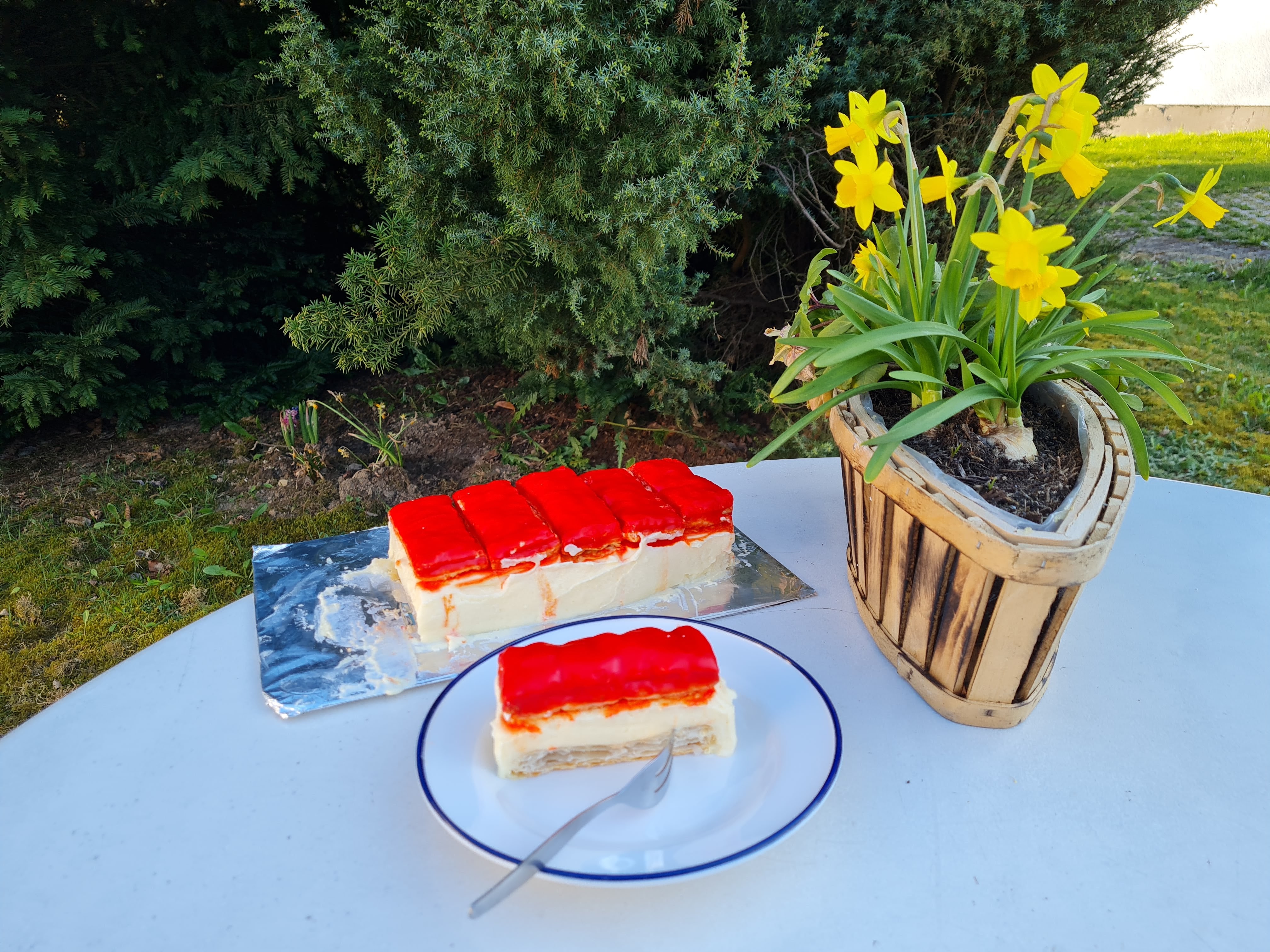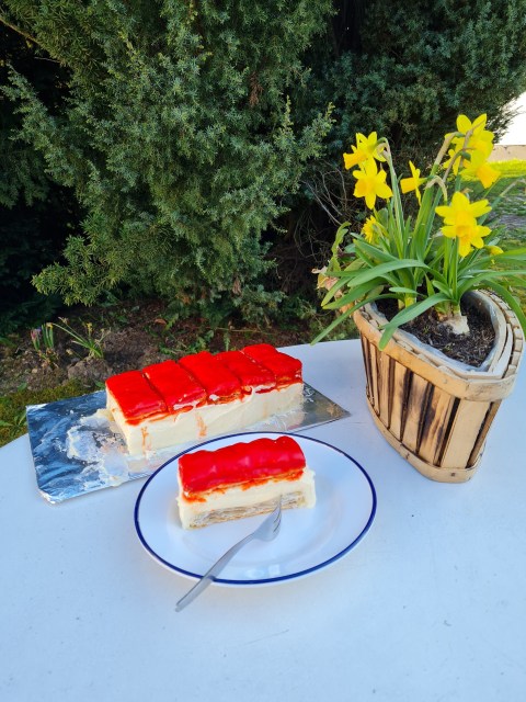 • Ако капачетата не са предварително порционирани, нарязването на сладкиша е много трудно. Кремът е пухкав и се смачква. Така, че препоръчвам предварително порциониране.
