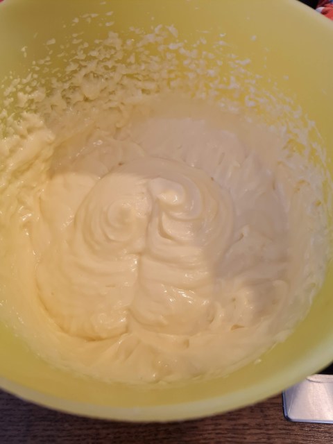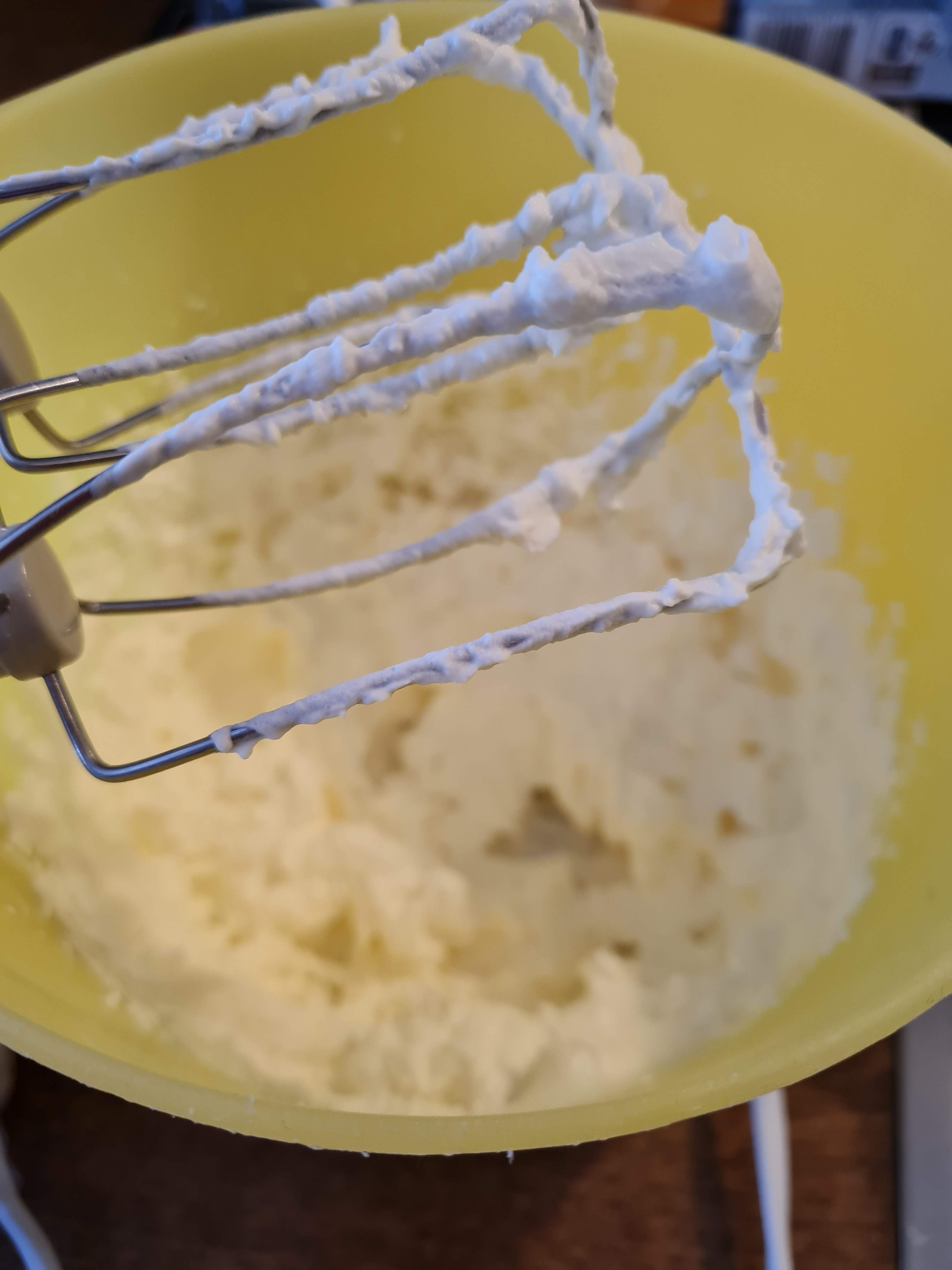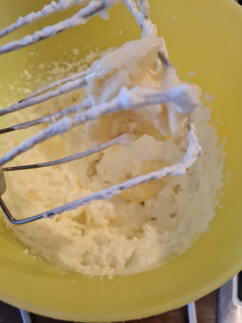 • Добавям охладения сладкарски крем постепенно и лъжица след лъжица, като не спирам да разбивам.