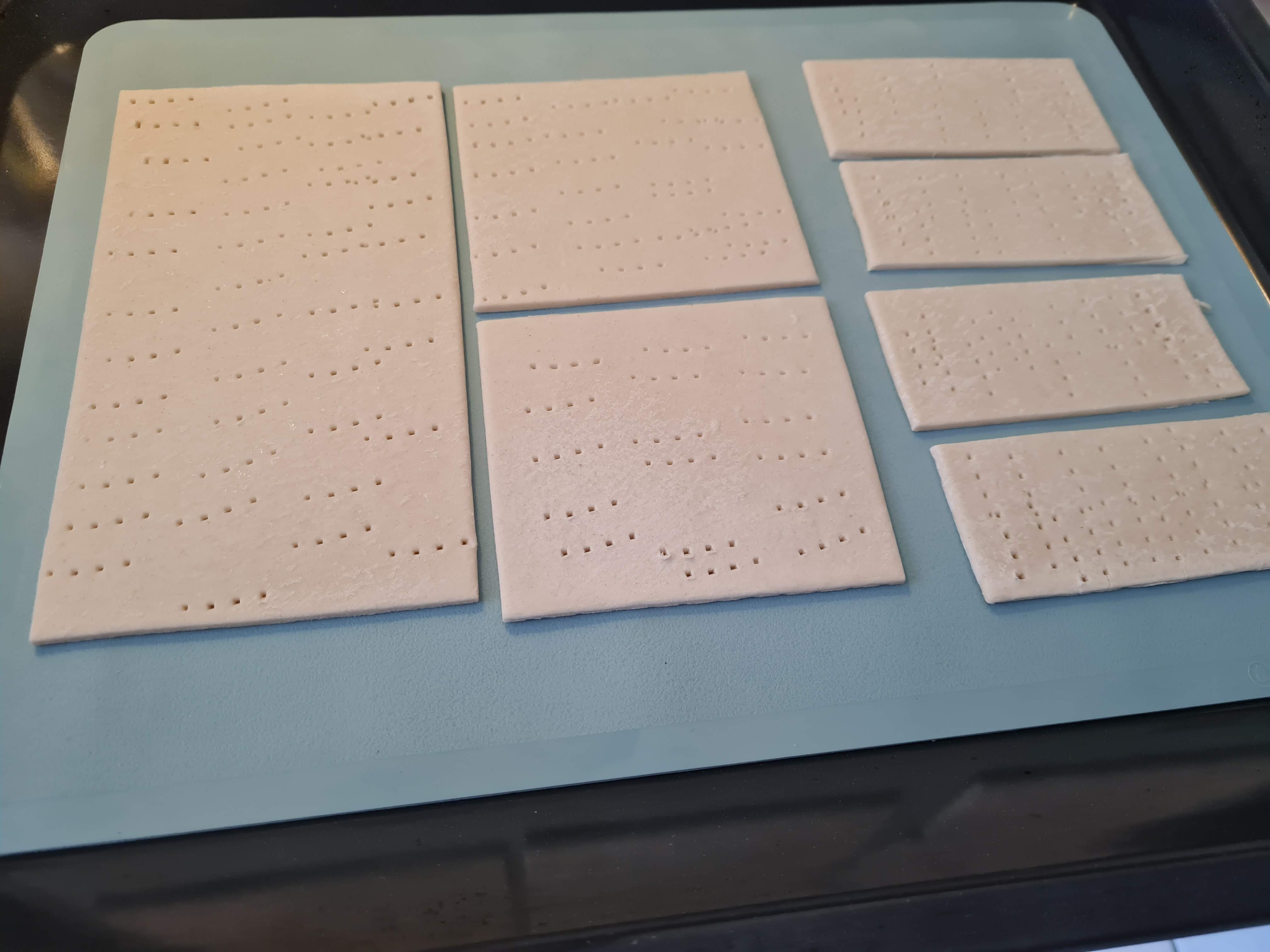 • Размразеното тесто подреждам в тавата на фурната върху хартия за печене или пък многократна силиконова подложка за печене.