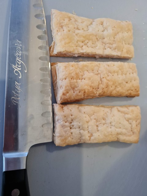 • Ако не съм оформила втората половина от тестото на продълговати парчета, го правя сега.
