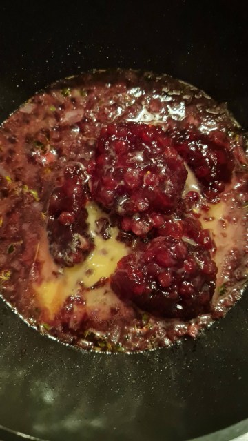 Днес приготвих специален сладко – кисел сос с боровинки, който му подхожда невероятно.