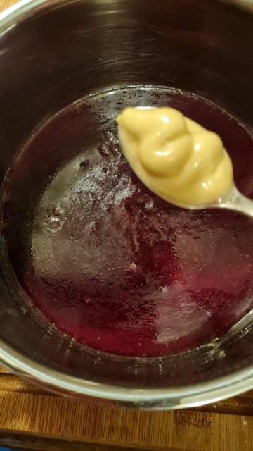 - Добавям горчицата и сгъстявам с разтвореното в малко вода нишесте. Оставям само за една минута на котлона.