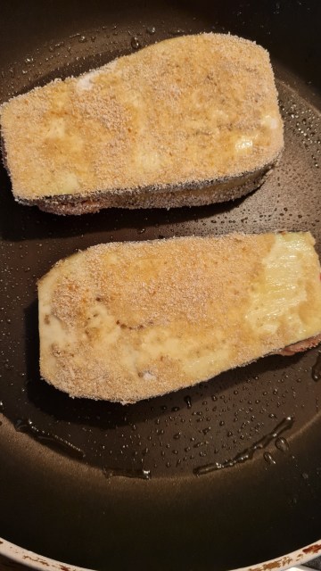 - Пържих от двете страни за около 5 минути или докато усетя, че патладжанът е омекнал. Колкото по-дебело е отрязан, толкова по-дълго ще се пържи. Котлонът намалявам малко, за да не ми изгори бързо панировката.