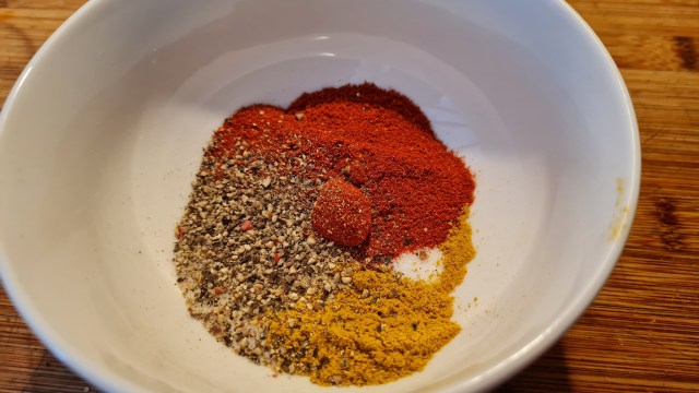 - В купичка смесвам 1 с. л. сол, 1 с. л. червен пипер, 1 ч. л. къри на прах (използването на тази подправка в Хунсрюк също си има исторя, свързана с Бразилия, но за това в друга публикация), 1 ч. л. майоран, 1 ч. л. черен или шарен пипер.