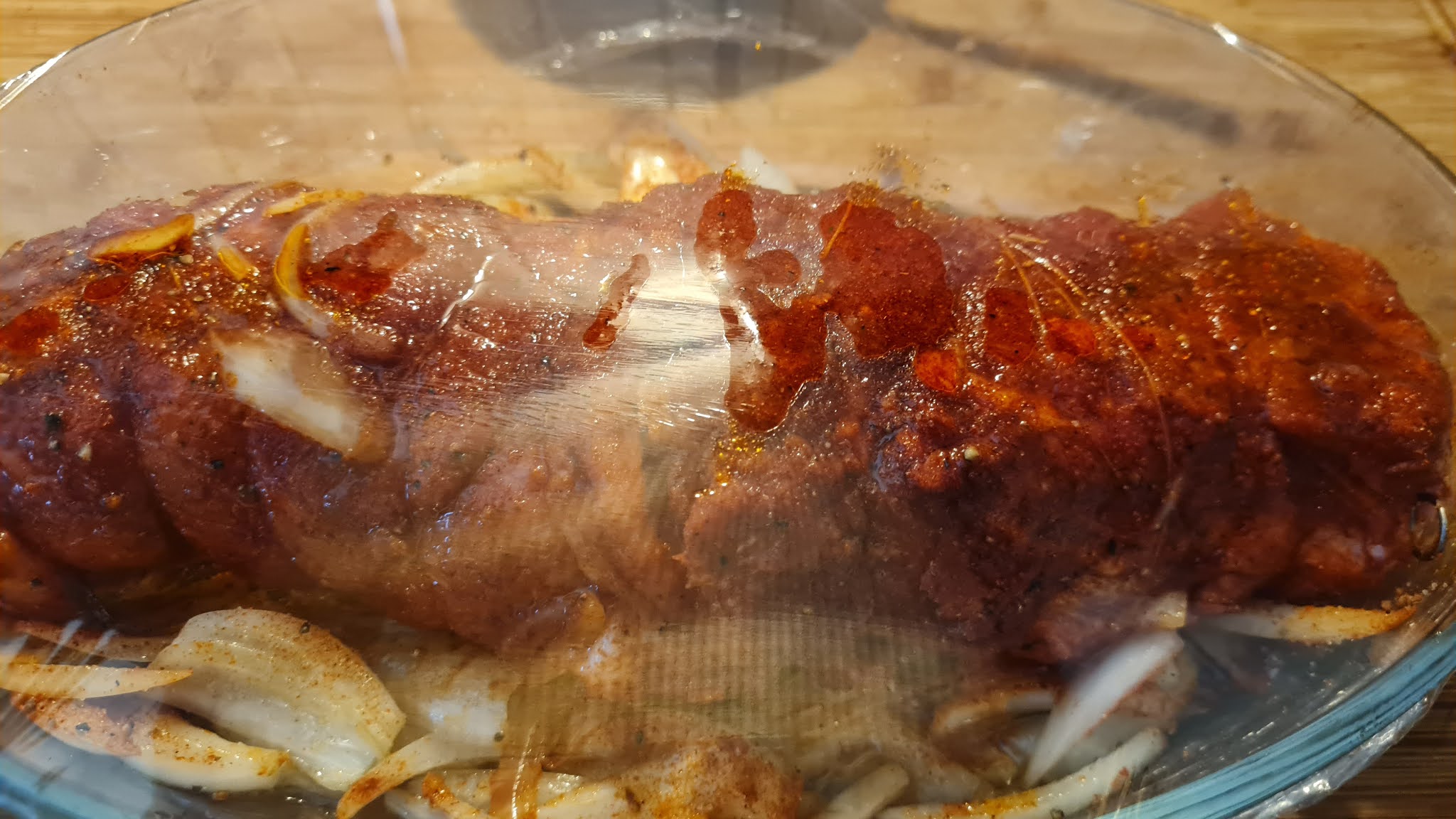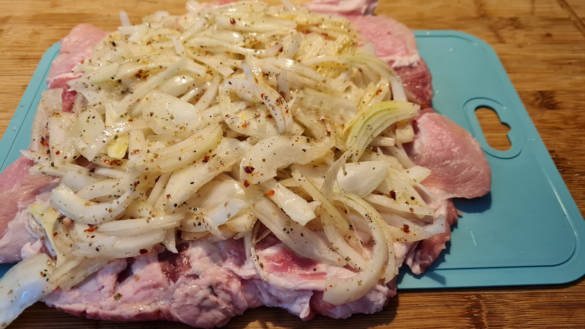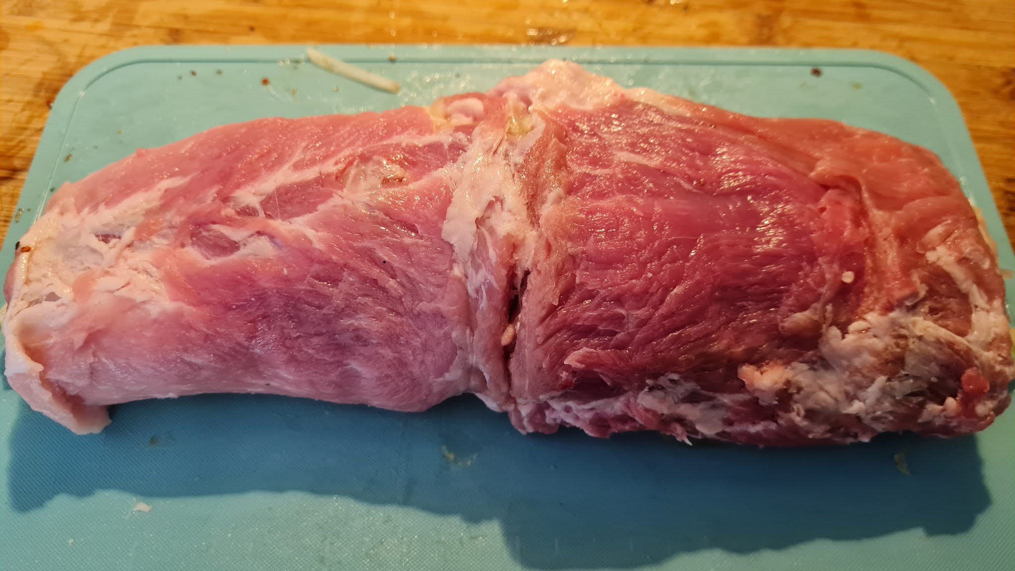 Принципно може да се купи готово навито и овкусено, само да си го опечем. Но преди два дни попаднах на намалено голямо парче свинско месо, което беше с кост. По-скоро филето с костта, където е котлета, но пък цяло месо. На момента знаех, че искам да направя печено от Хунсрюк, за да запозная всички Вас с тази вкуснотия.