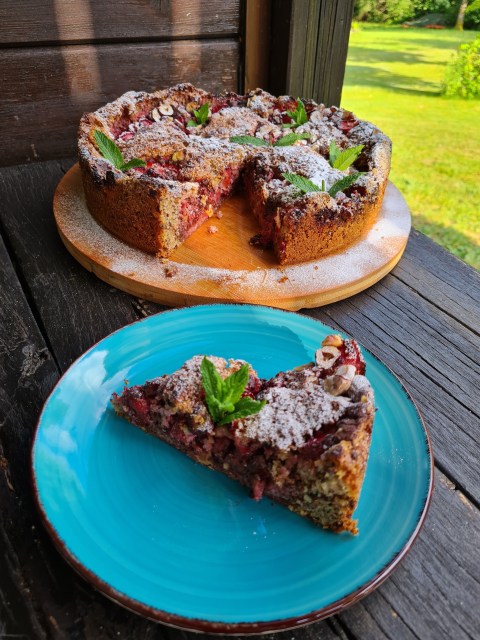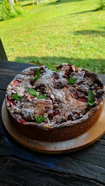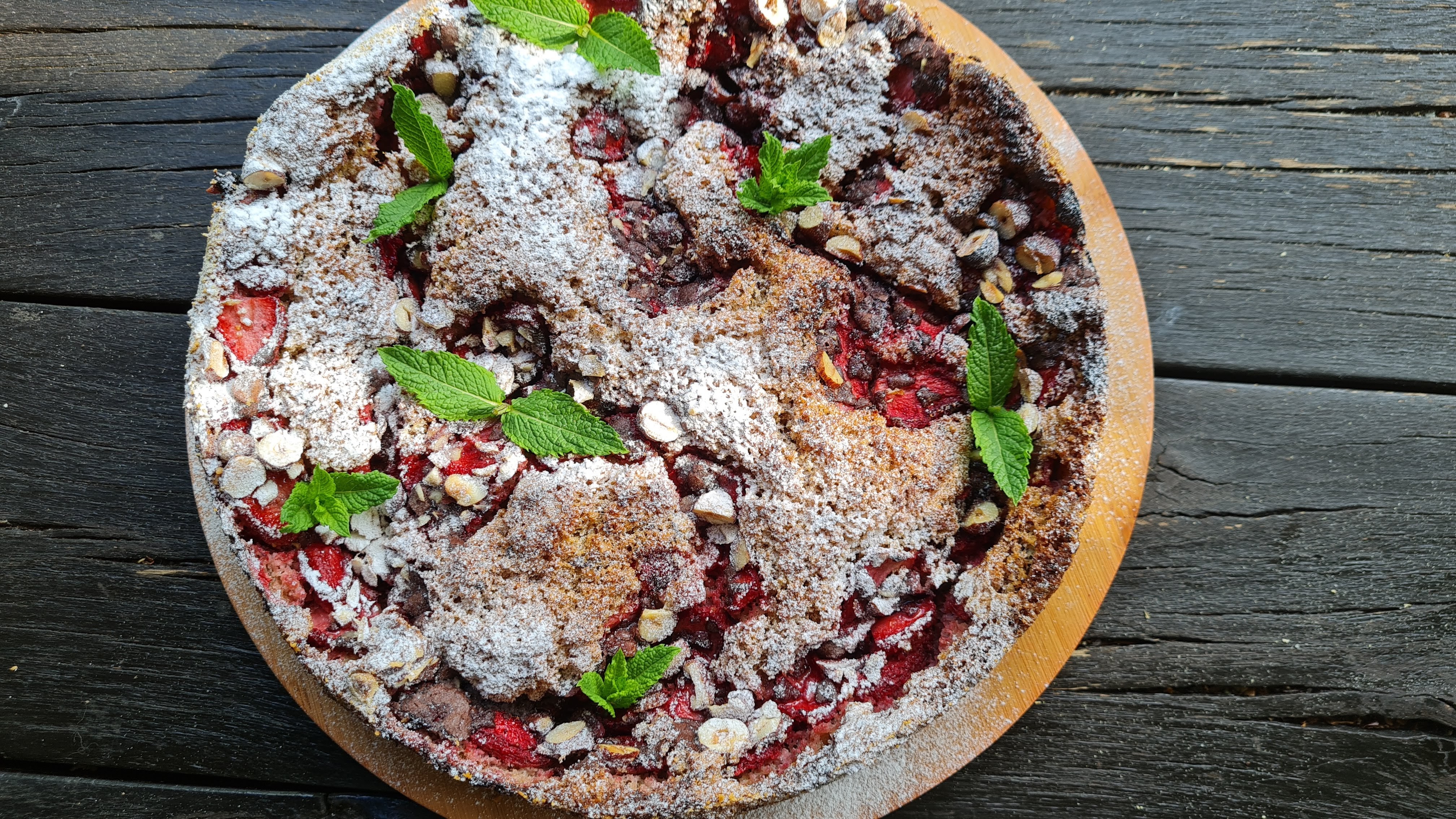 Свеж от присъствието на ягодите, пухкав от това, че е без брашно и с аромат на шоколад.