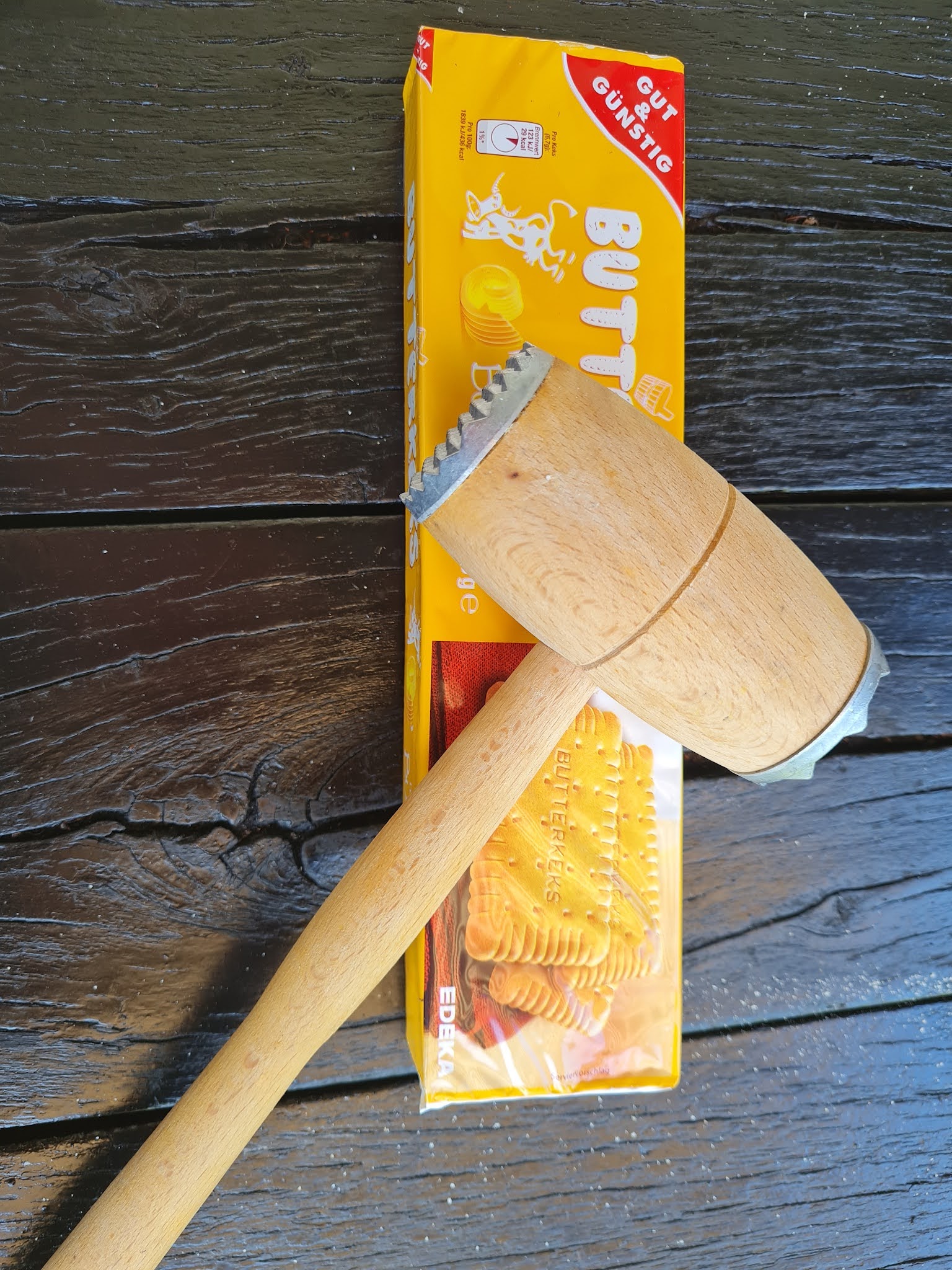 - Като всеки студен чийзкейк, начупвам бисквитите на ситно. Кой както иска! С чукче, с блендер, в плик или по друг начин. Важното е да са като брашно.