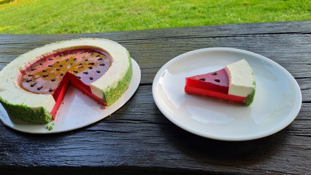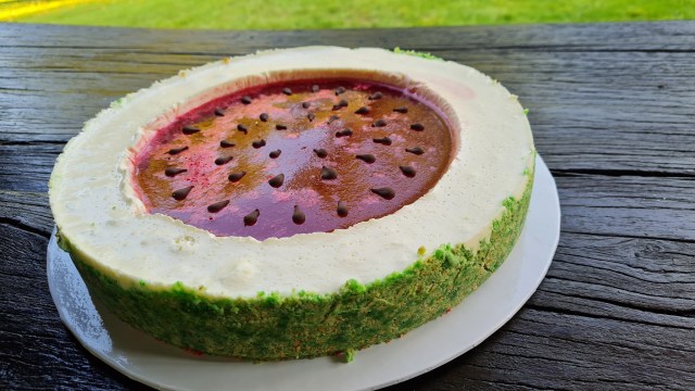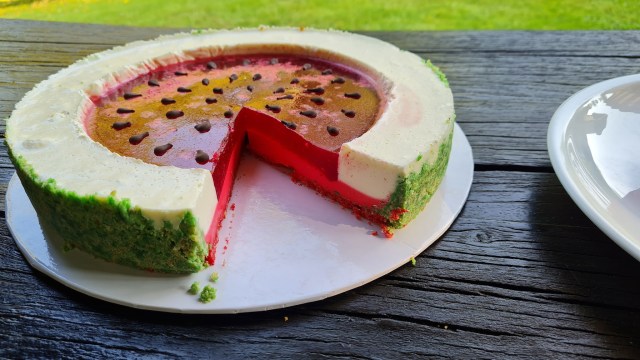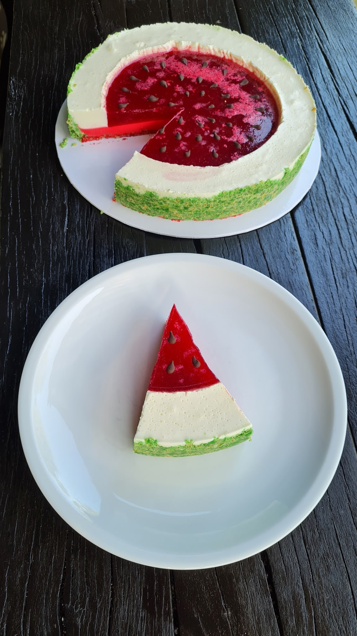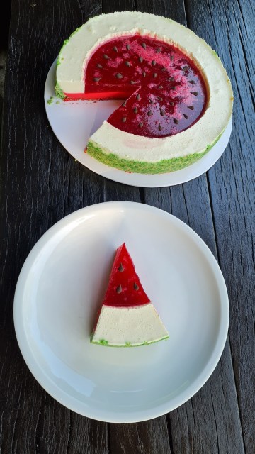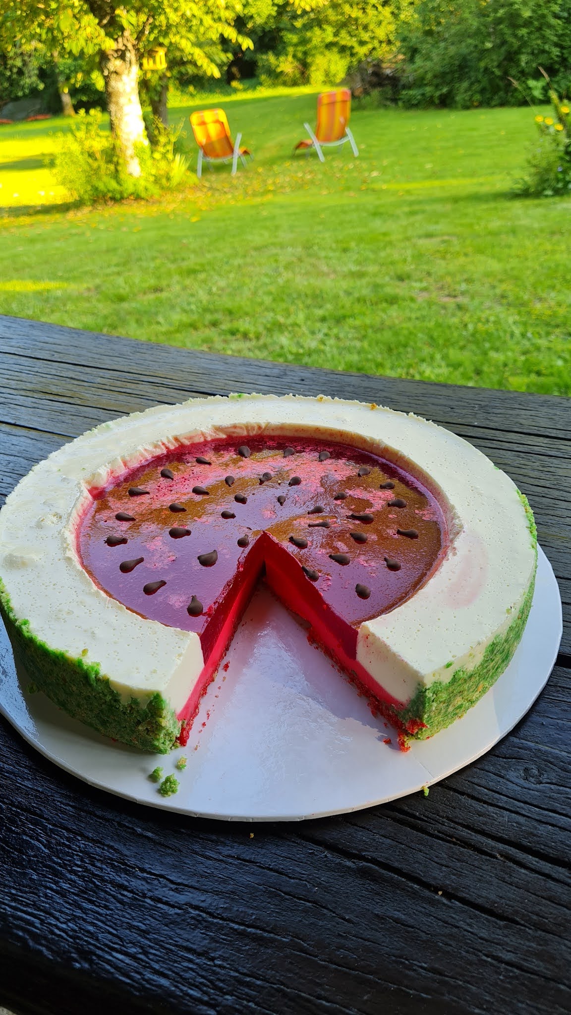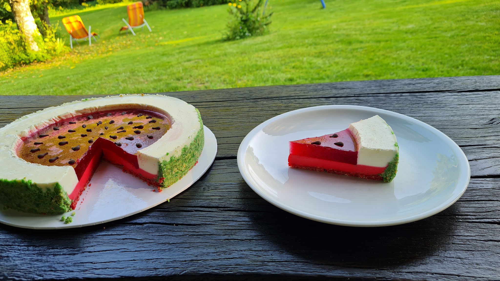 Днес, у дома хапваме торта под формата на диня, направена с диня.