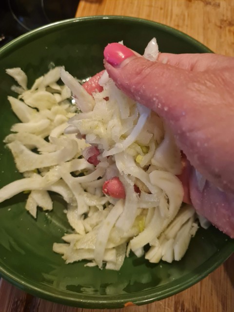 - Резенето почиствам от кочана и израстъците, като си запазвам от листата за декорация.