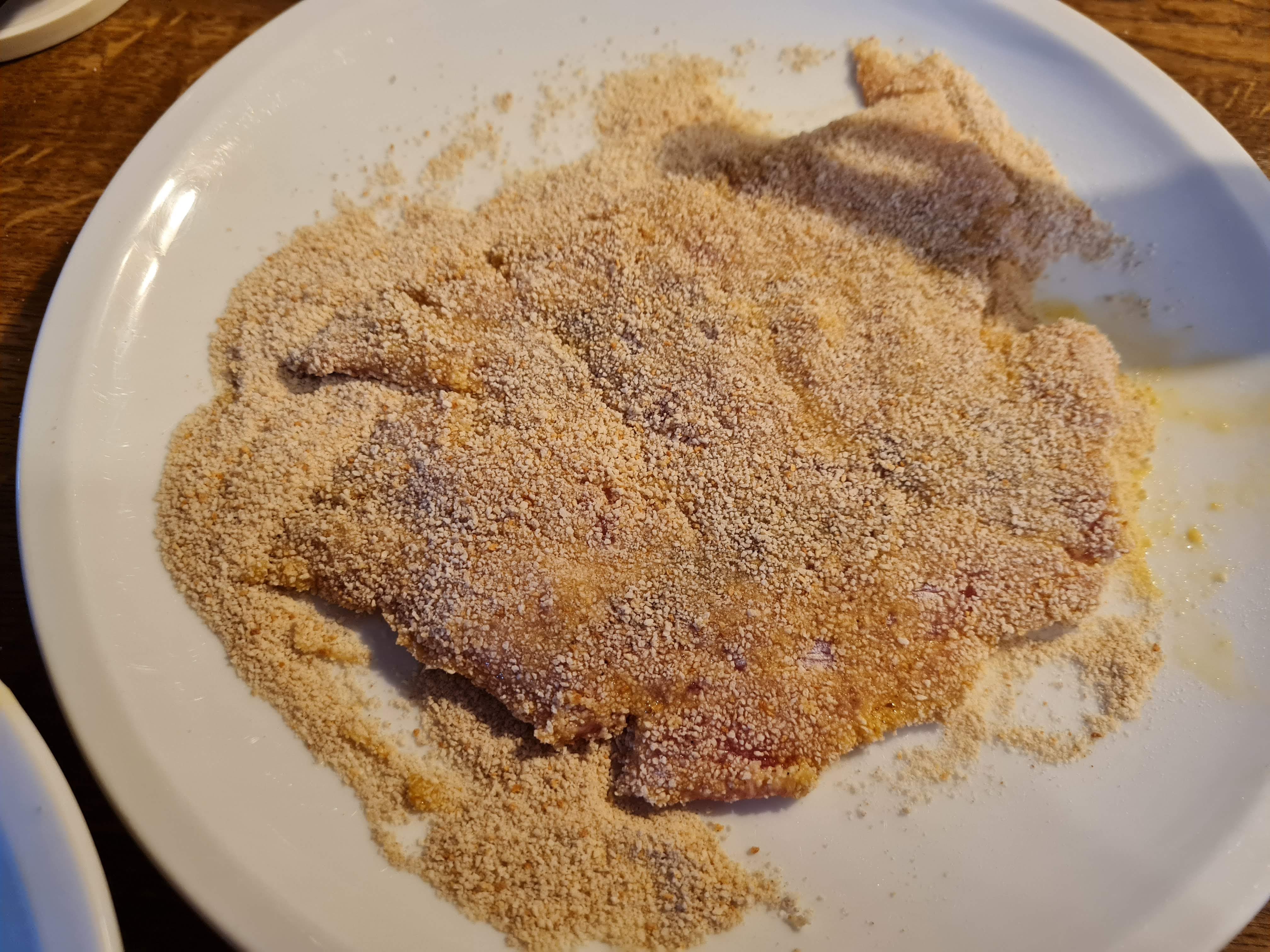 - Подправям на вкус със сол и черен пипер, и панирам по стандартния начин.