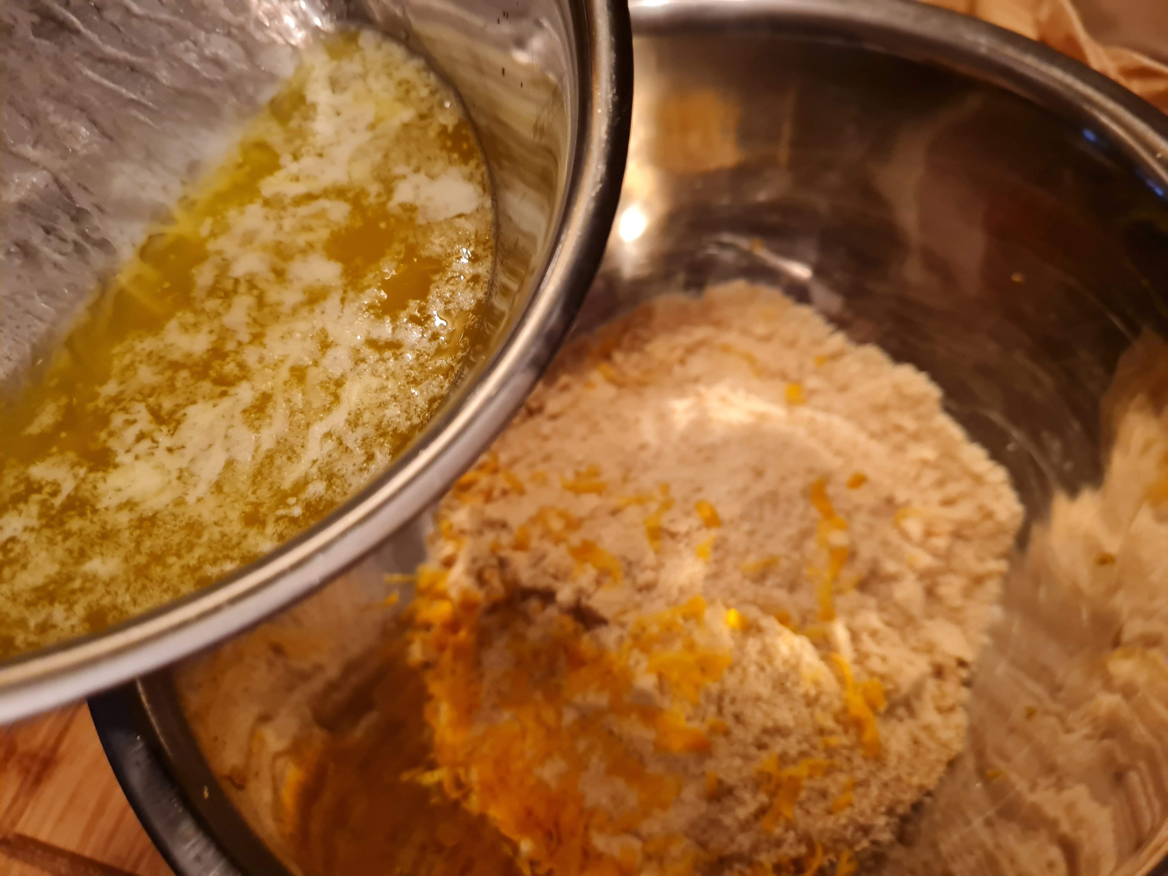 • Изсипвам в купа и настъргвам добре измитата кора на портокала.
