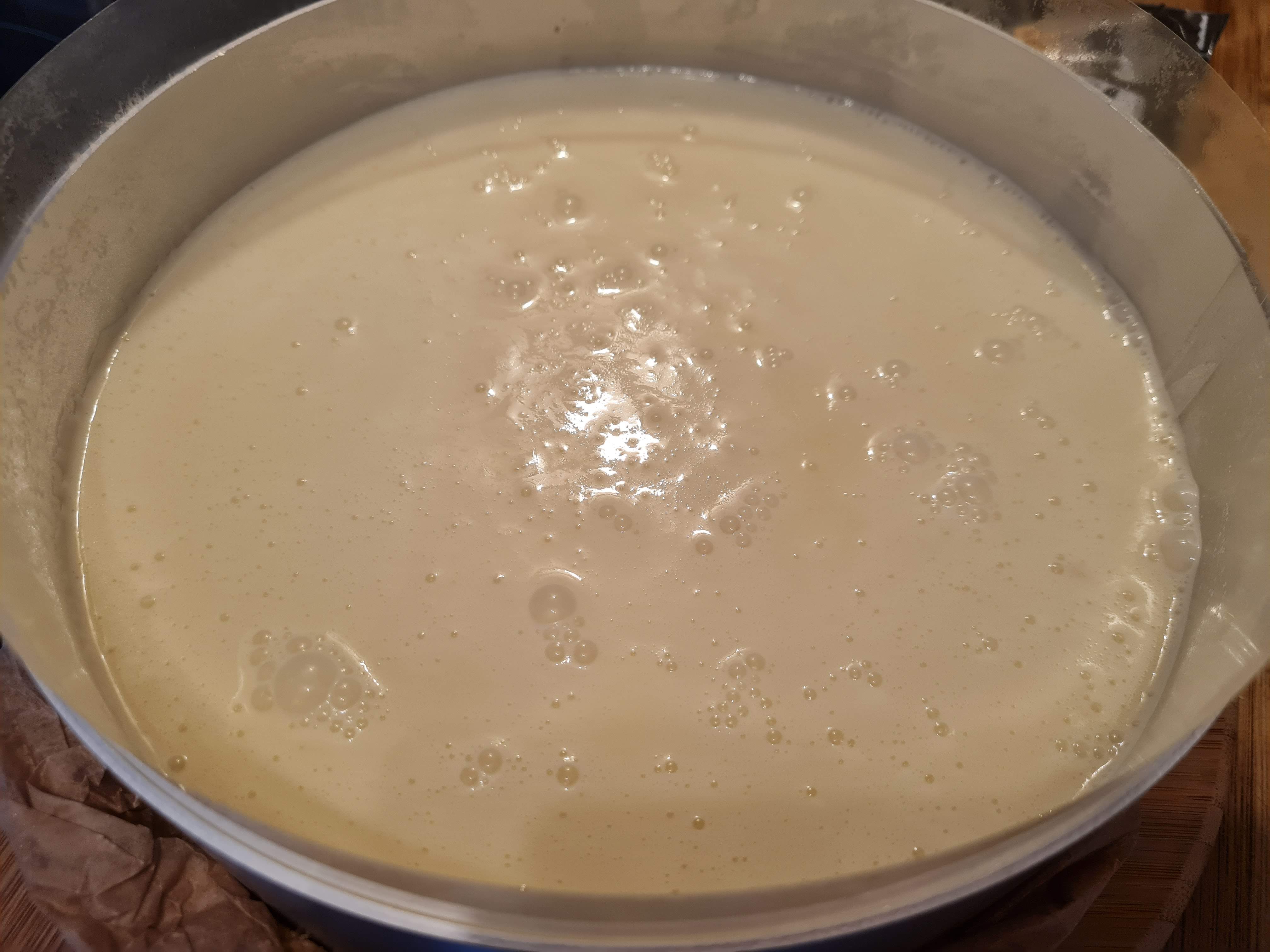 Но…първо ще Ви разкажа малко за оригиналния продукт Cuajada с буквален превод ИЗВАРА. Това е млечен продукт от овче мляко, който за първи път е произведен в Навара (Северна Испания). На баски (Баския) е кръстен Mamia. При производството на Cuajada (извара) се загрява овчето мляко до 40 ° C и се добавя мая за подсирване(Lab). Млякото ферментира и се получава извара с консистенцията на кисело мляко. И понеже загряването се извършва с камъни, нагорещени в огън, тази испанска извара получава лек опушена нотка в допълнение към мекия, характерен овчи вкус. Като алтернатива се използва вече и краве мляко.