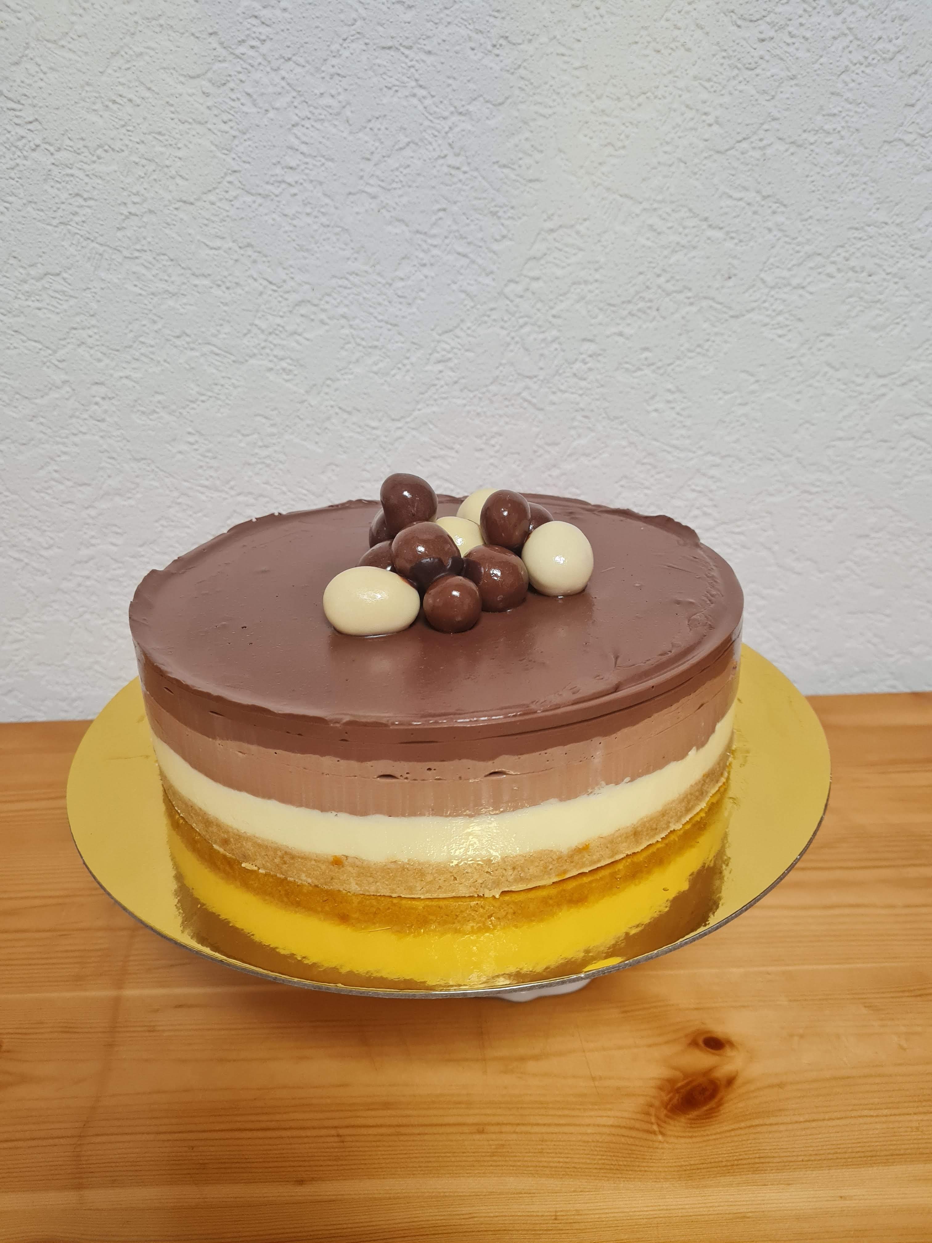 За да достигна до моя вариант на торта три шоколада, получих рецептите на Светла Иванова и Петя Маринова, и двете живеещи от дълги години в Испания . Четох и много немски преводи. Рецептите не са много сложни (все пак са измислени от домакините в Испания) и се отличават съвсем малко в количествата продукти.