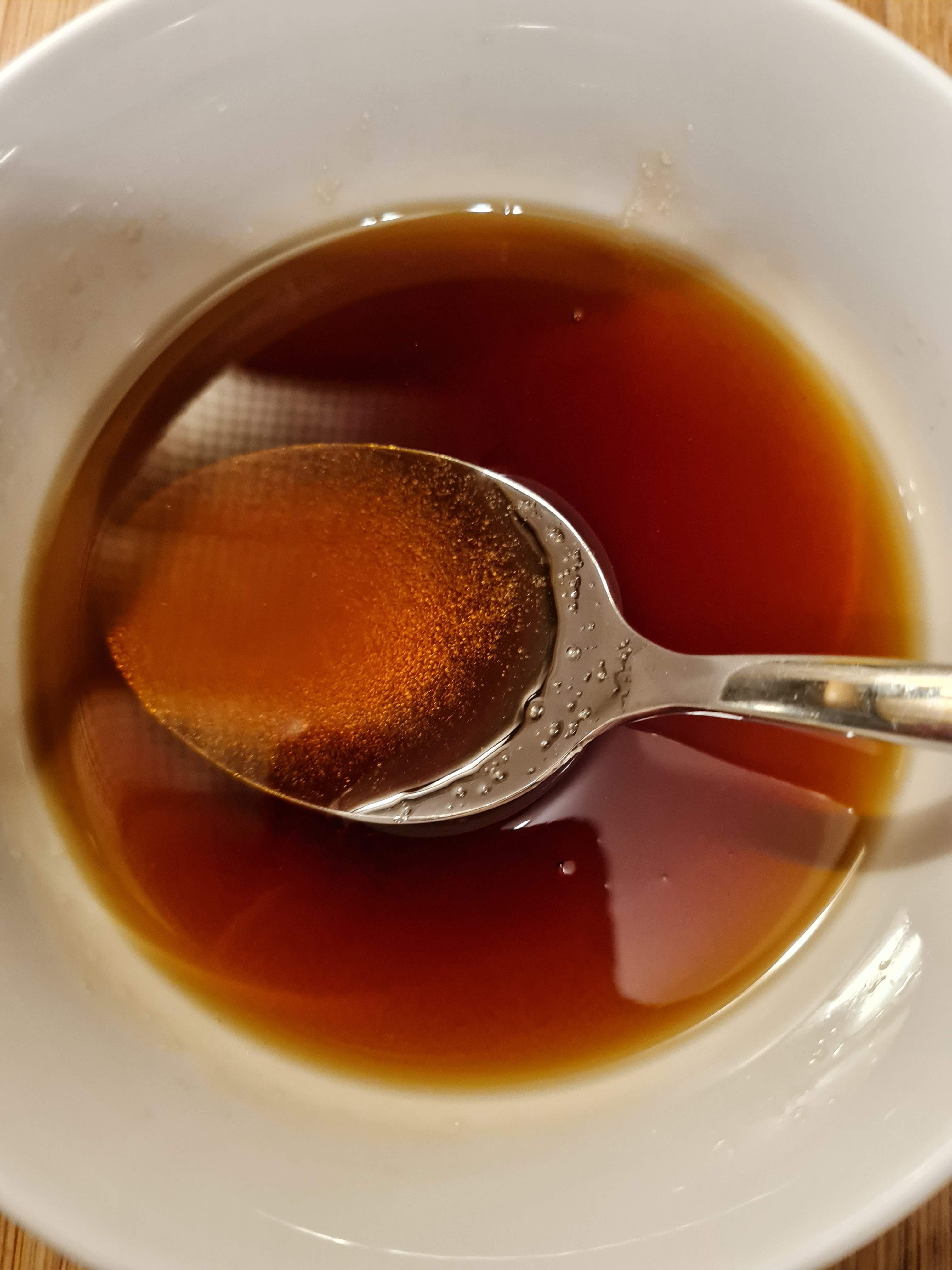 - Подготвям си сместта от подправки. За целта смесвам 8 с. л. оризов оцет, 4 с. л. захар, 2 с. л. оризово вино (по възможност сладко) и 2 с. л. светъл соев сос.