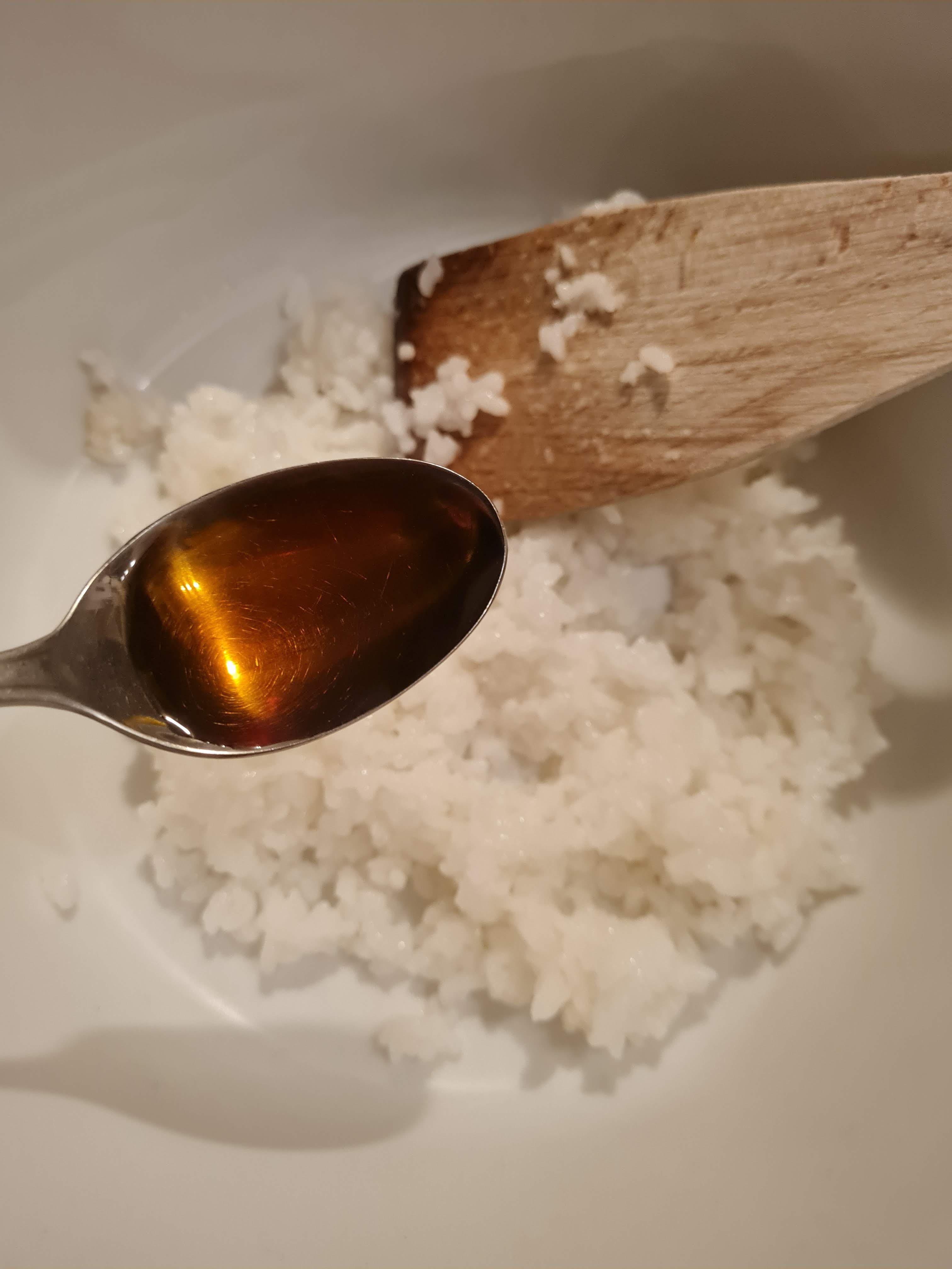 2 с. л. оризово вино (ако имате сладко, ако не….каквото имате)