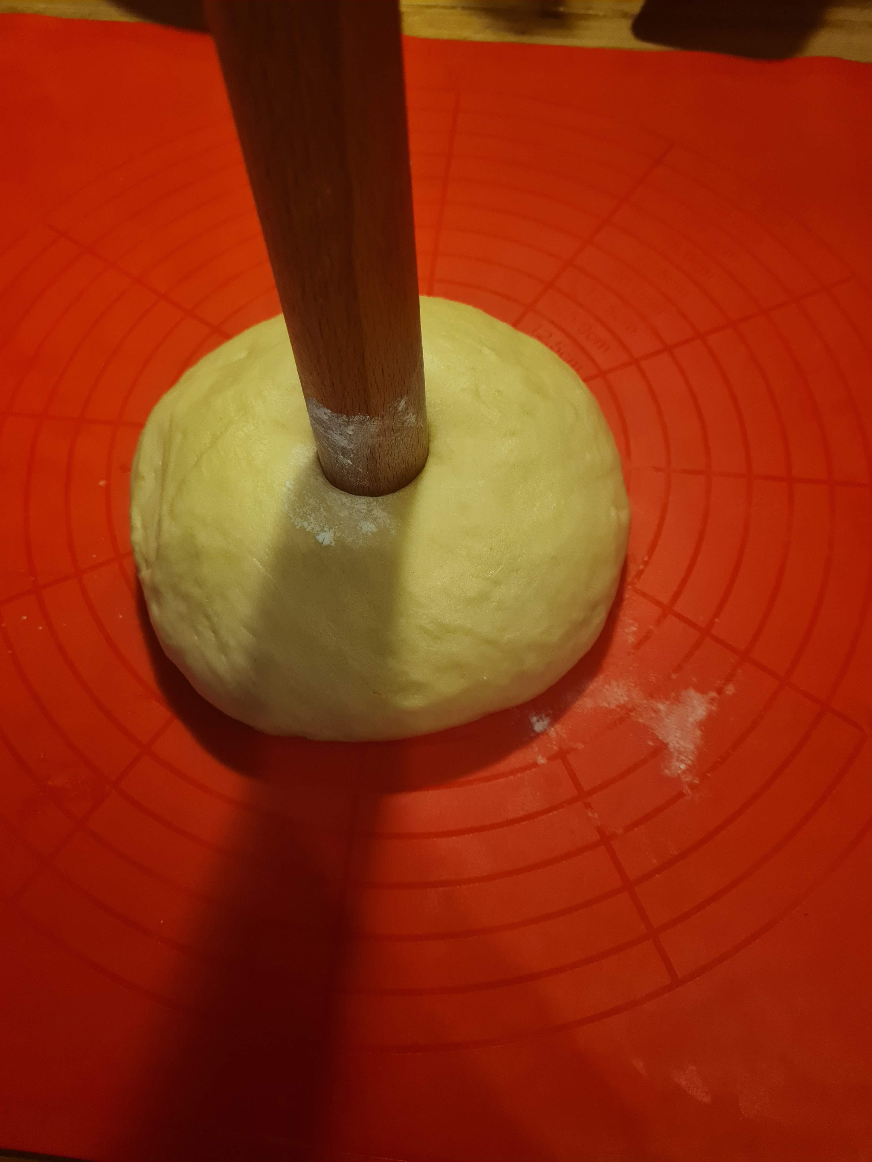 • Точно така! Оформя се с дървената точилка. Ама да Ви кажа честно при бейгълите е много по-лесно, защото са малки на размер. Тук ми отне малко време, но пък стана перфектен геврек.