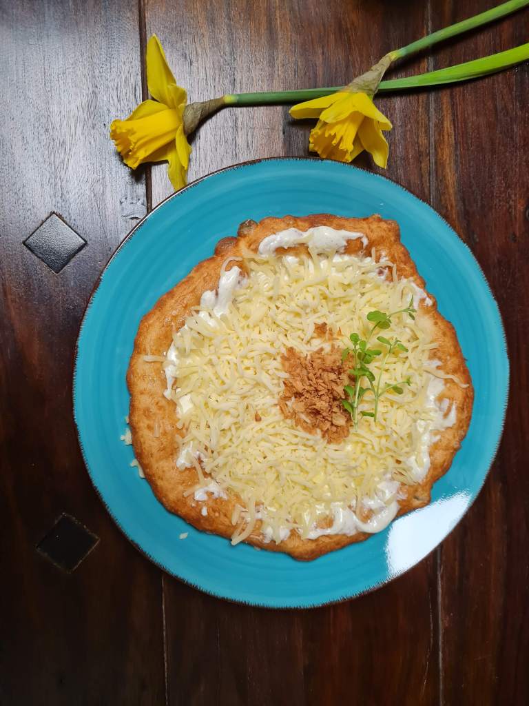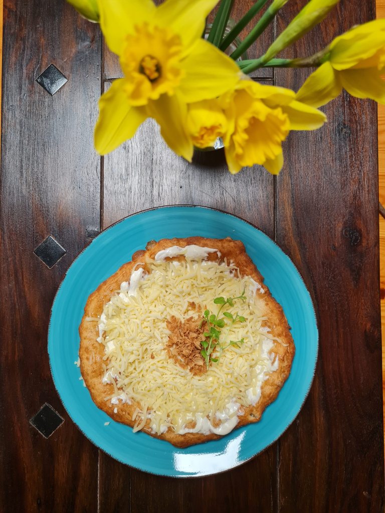 Аз днес направих Lángos с бавно втасване на тестото – 12 часа, но ще дам и възмжност на бързащите.