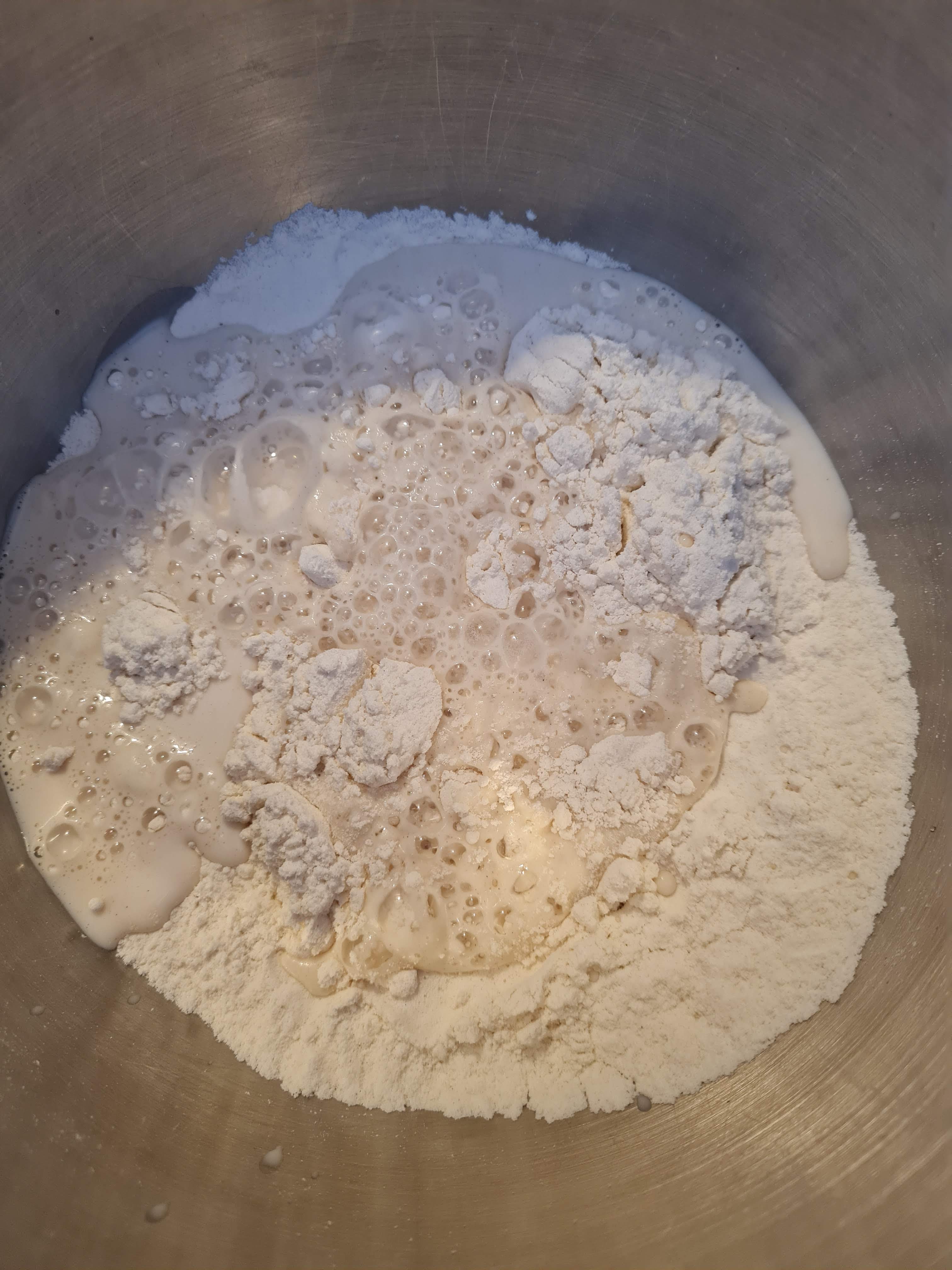 - Покривам купата с фолио за свежо съхранение и оставям на стайна температура за около 1 час да втаса.