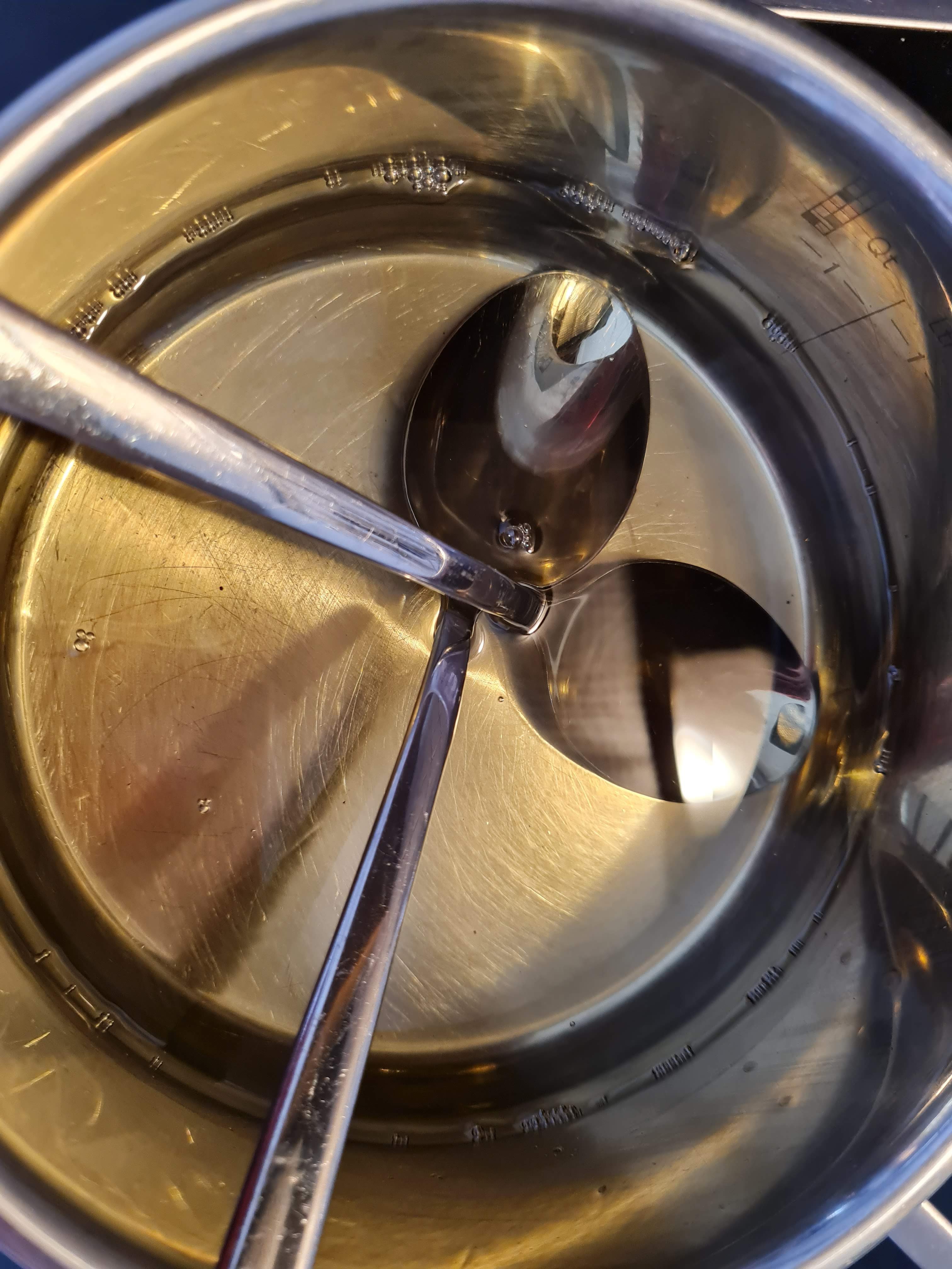 - Загрявам олиото (аз използвам 500 мл за малка касерола) до 160 – 180 градуса.