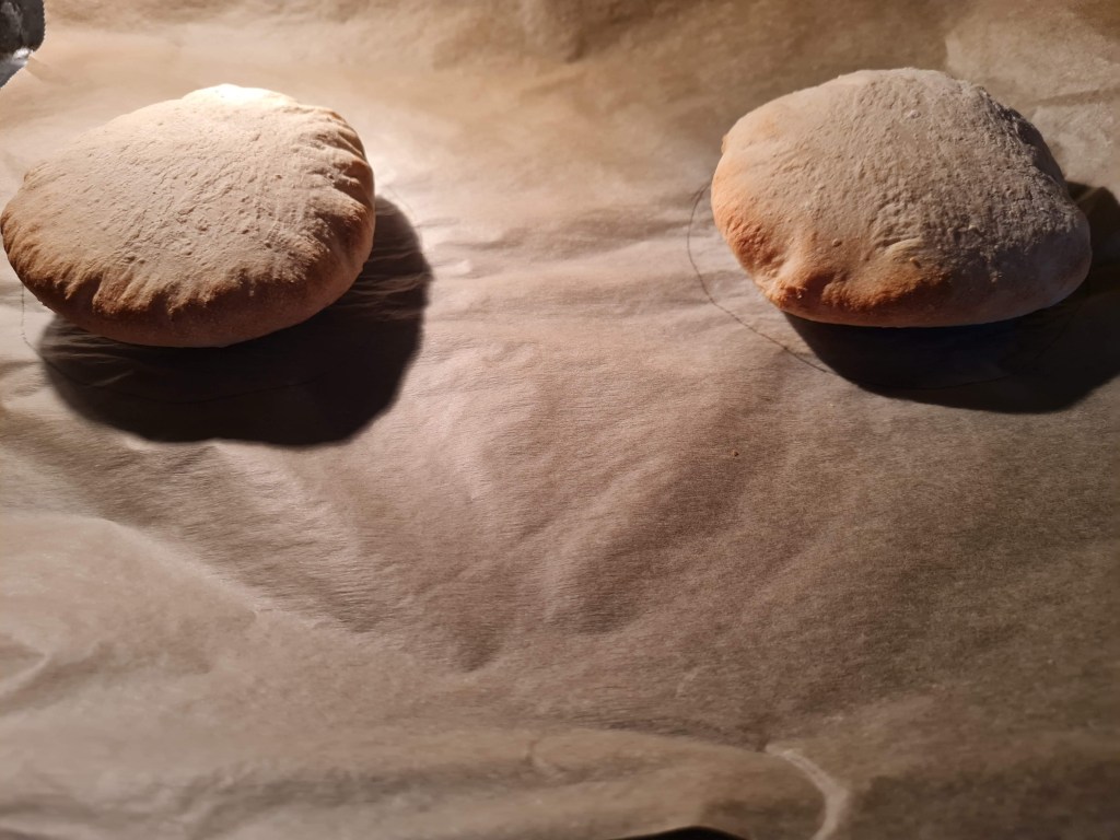 • Пека точно 5 минути. Добре разточените питки се издуват във фурната като балон.