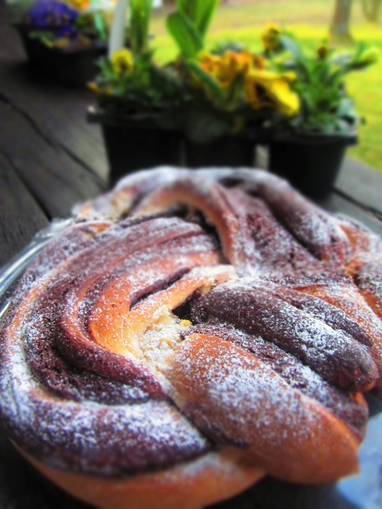 Немската козуначена плитка с марципан, можете да направите по рецепта ето тук.