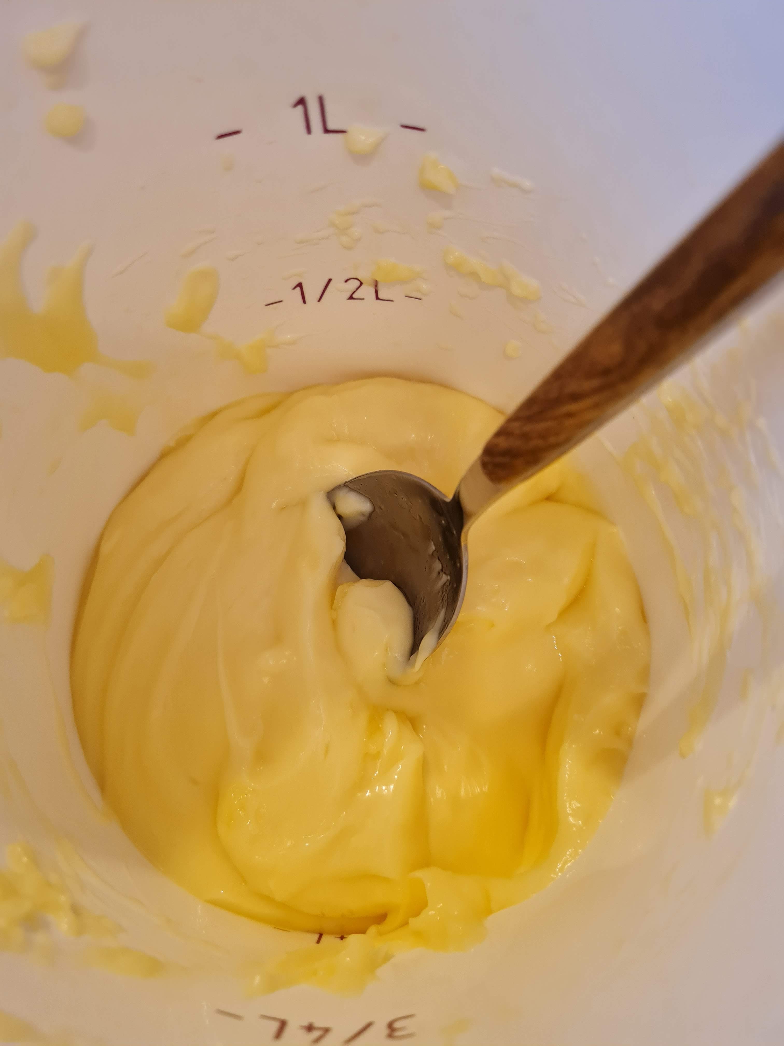 На другия ден започвам първо с приготвянето на крема. Аз избрах да е с варене, за да няма присъствието на сурови яйца в сладките.
