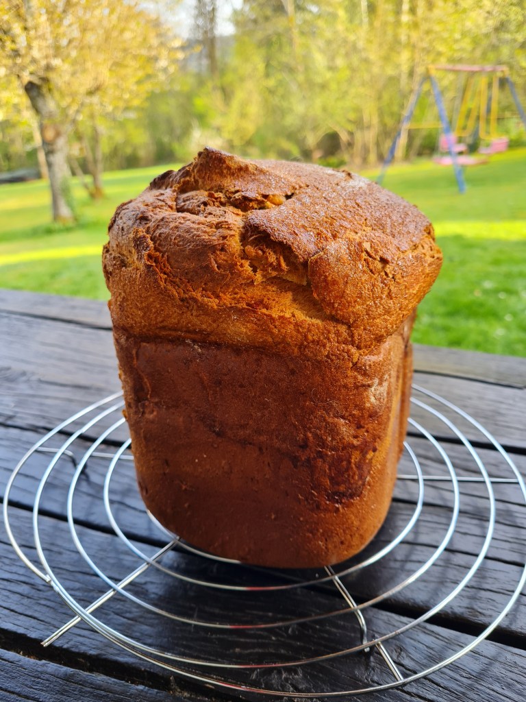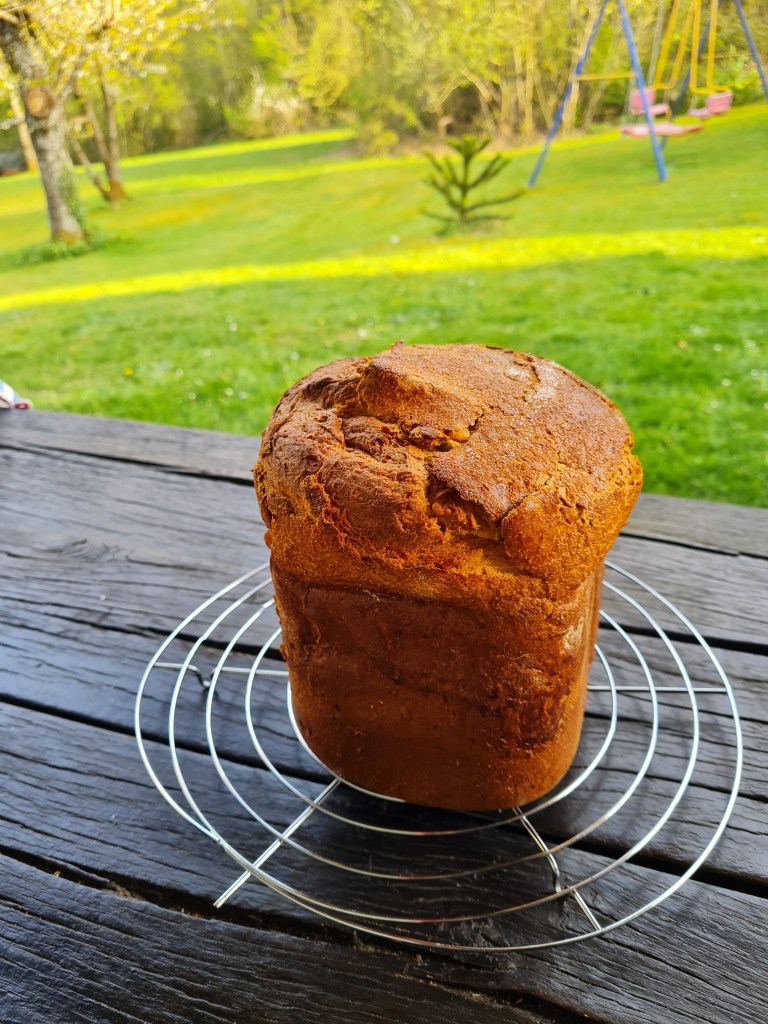 Аз съм бърза. Веднага го замесих и чаках с нетърпение да стане готов. Резултатът го виждате и Вие. Уникален! Висок е 25 см. Пухкав, ароматен, сладък.